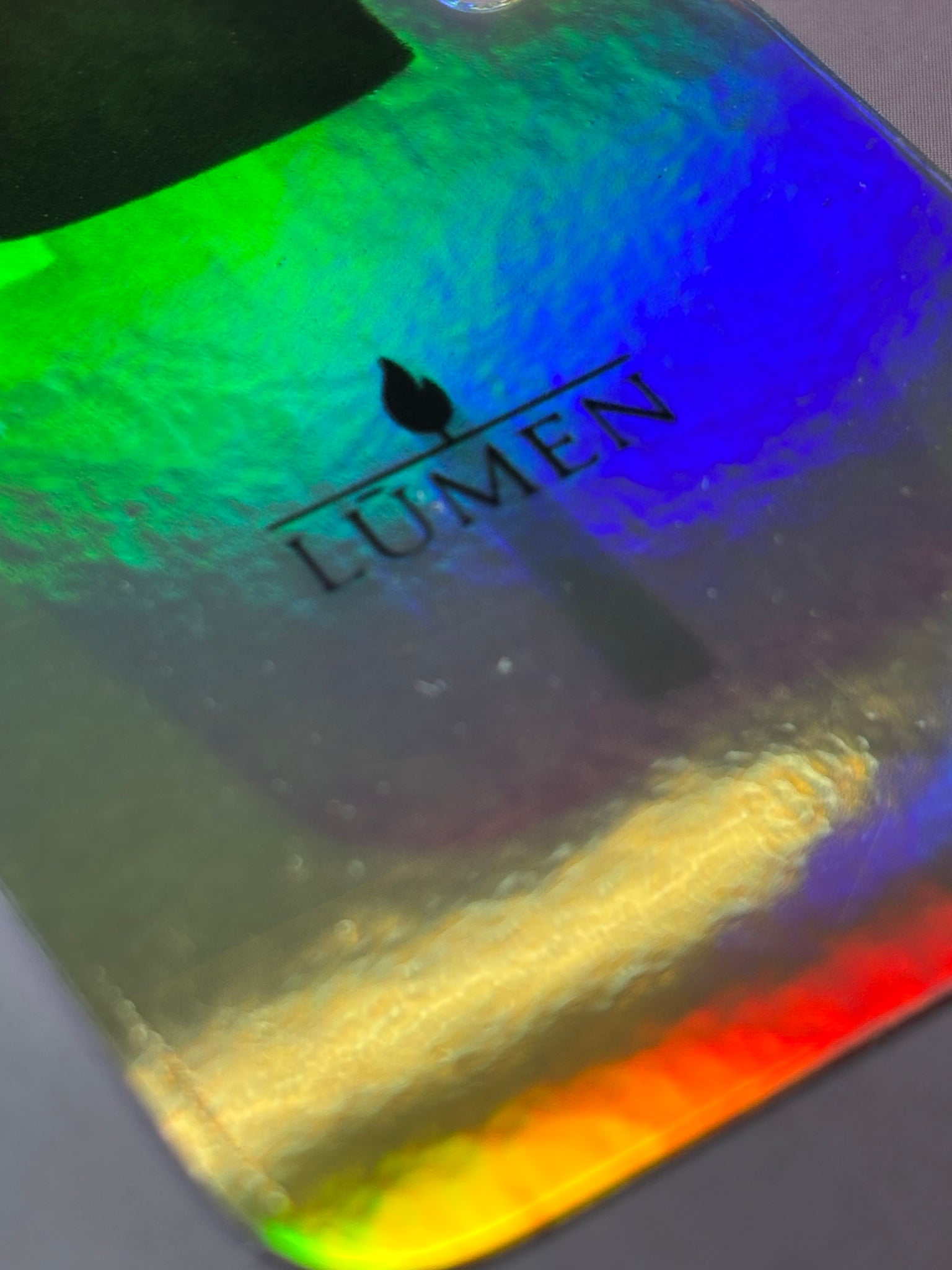 ✨ Eye-catching holographic finish that shifts in the light, Features the signature Lumen bottle design.