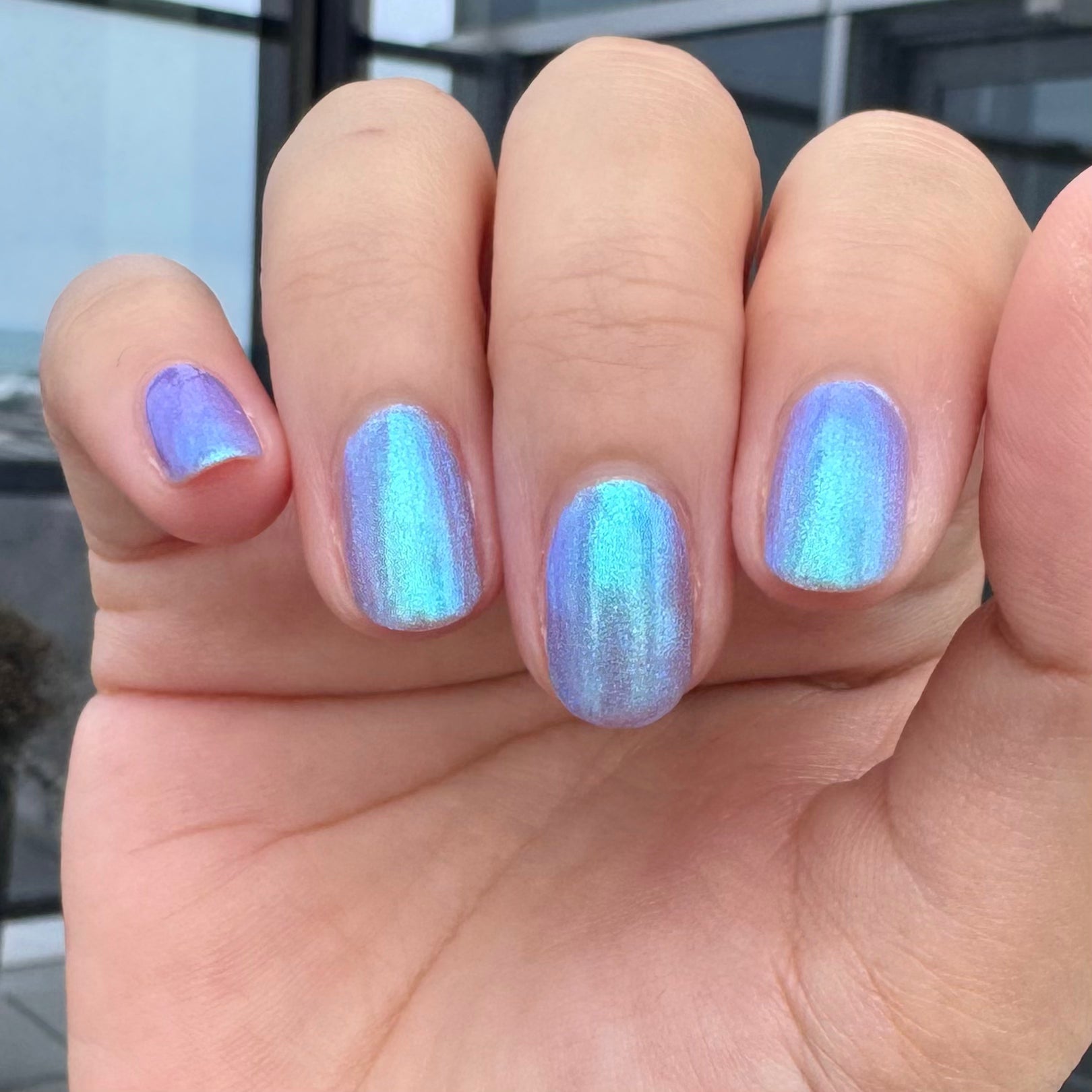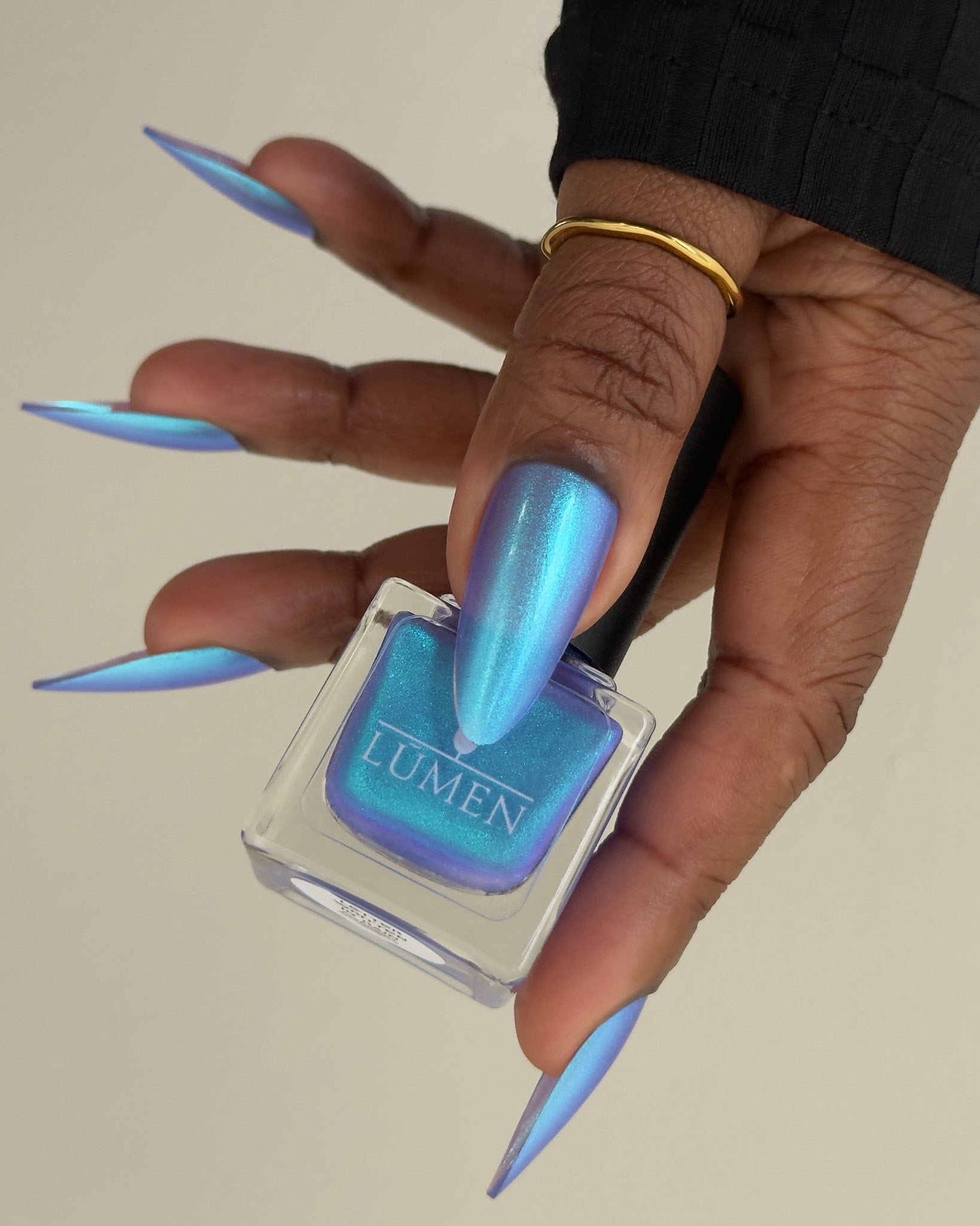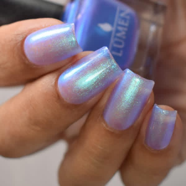 A splash of color, like ink dissolving into memory. Letter Written in Rain is a luminous blue that shifts from blue to green to indigo, catching the light like a story half-told. A blue-to-purple pearl shimmer finish adds depth in the most delicate way.
