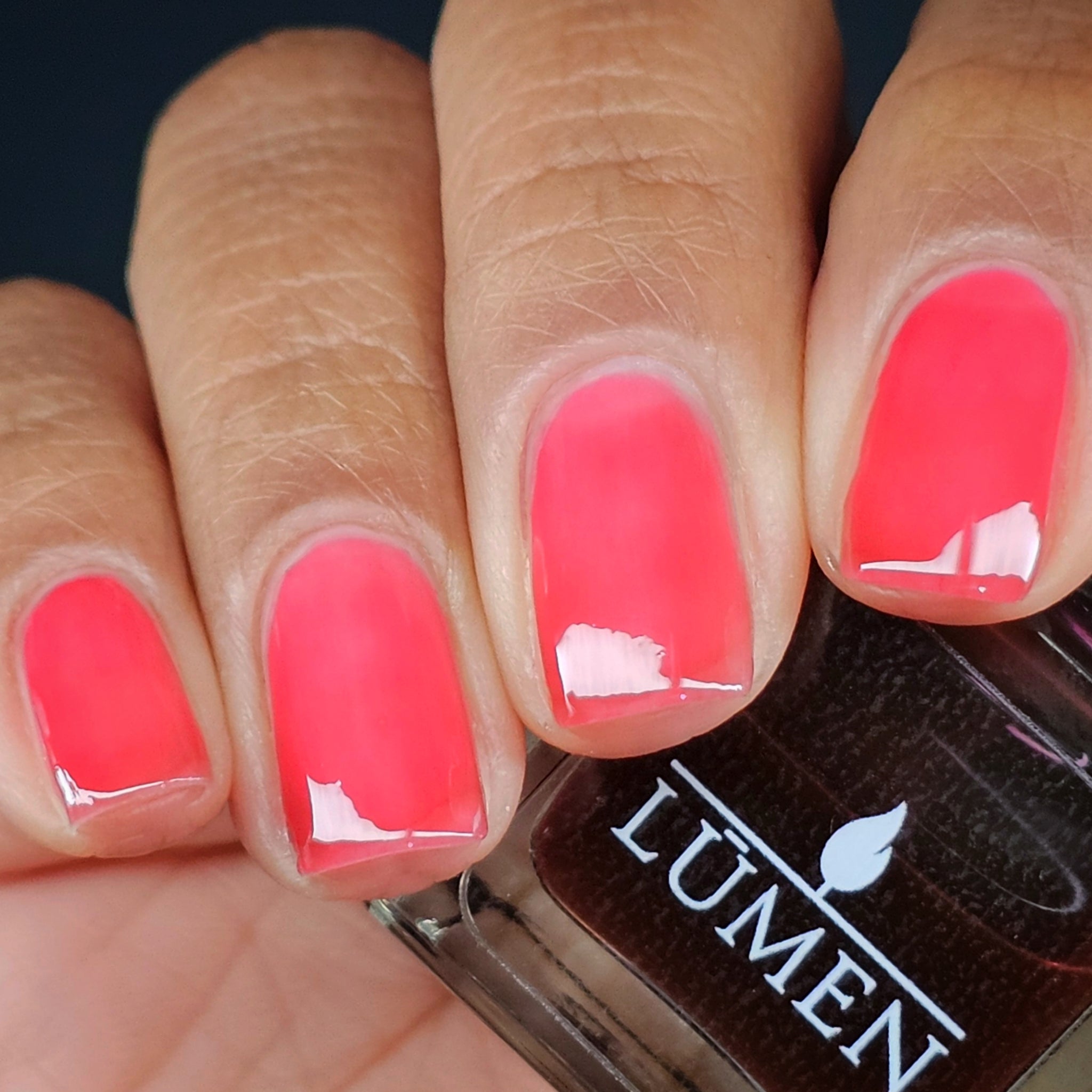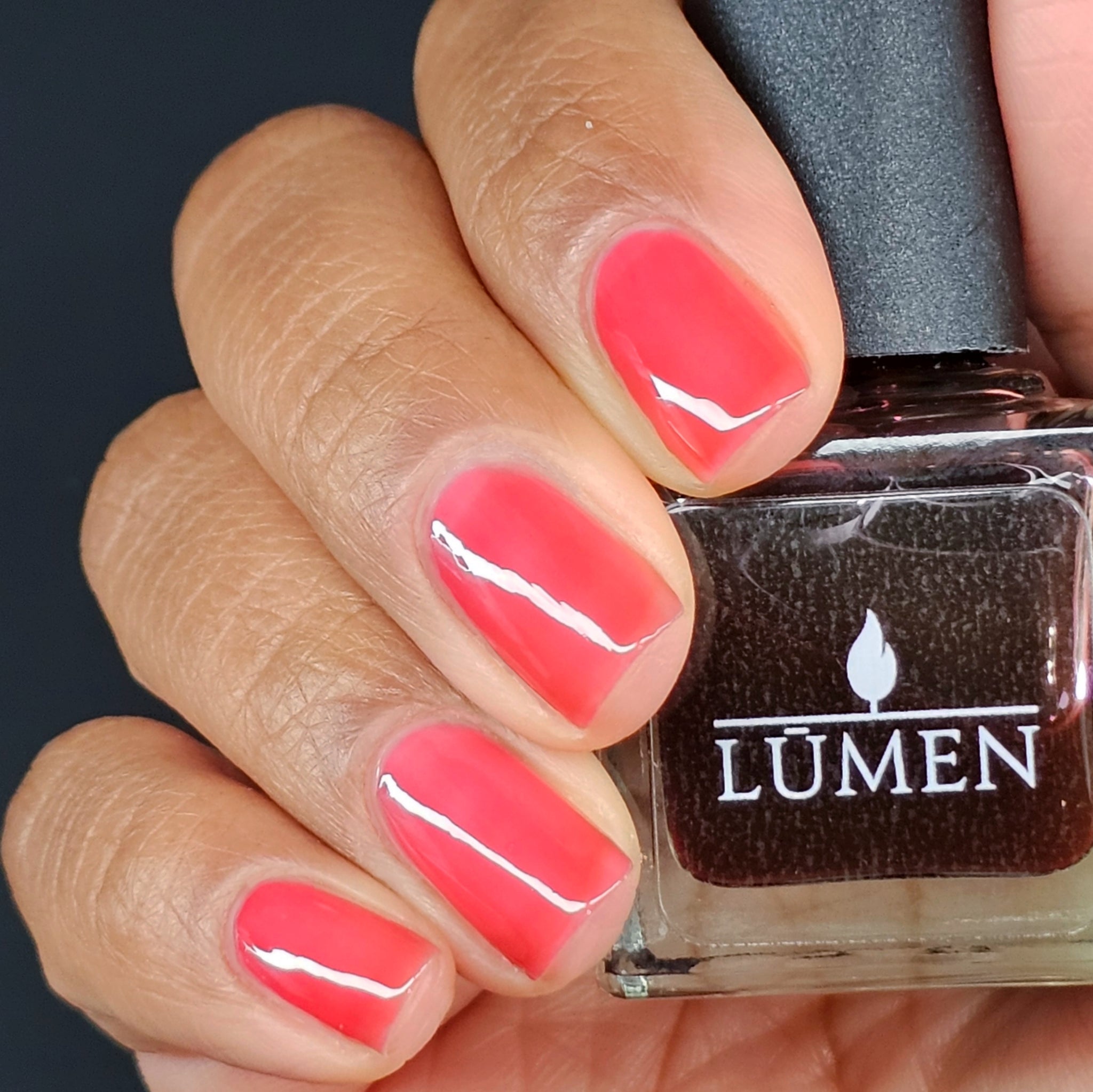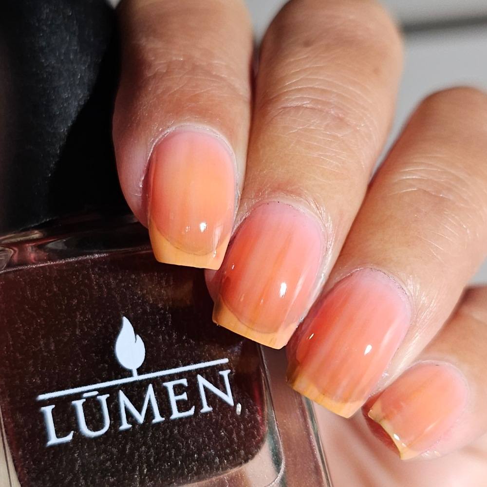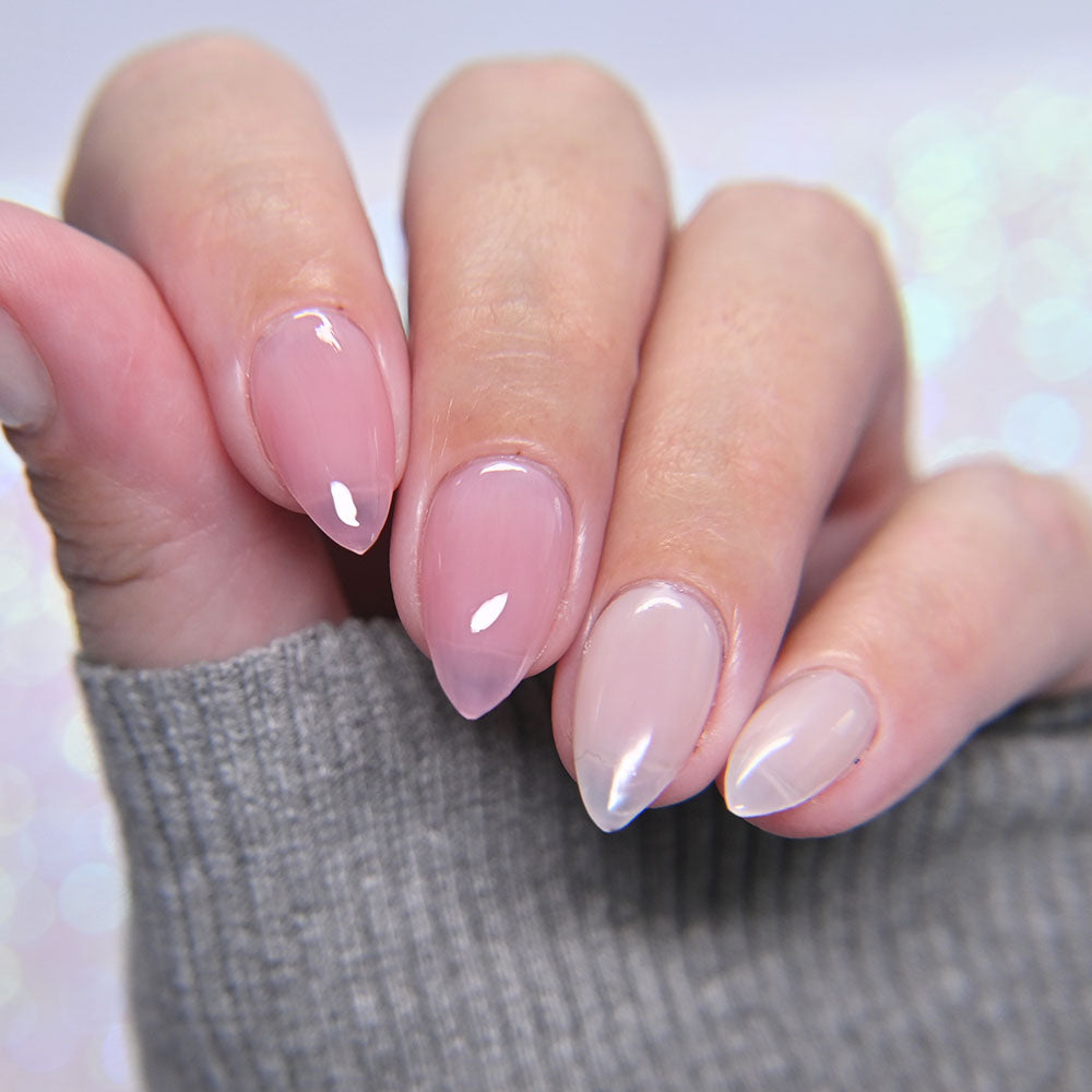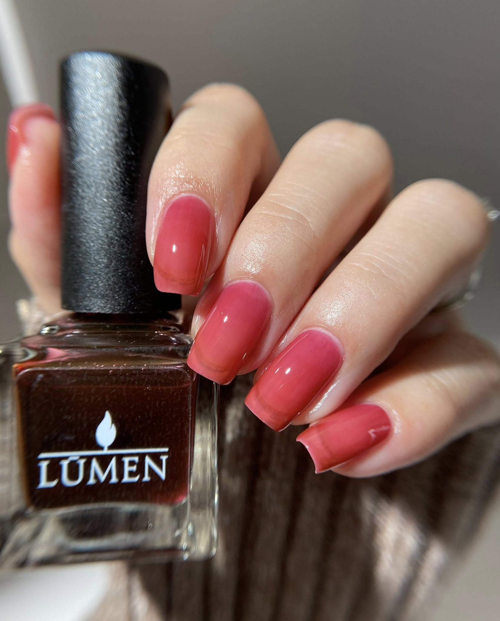 Cherry Glaze Is a scented tinted topcoat with a hint of black cherry color and scent. Wear this glaze for a delicious glossy coat over any shade, or wear it alone for a subtle color over natural nails.