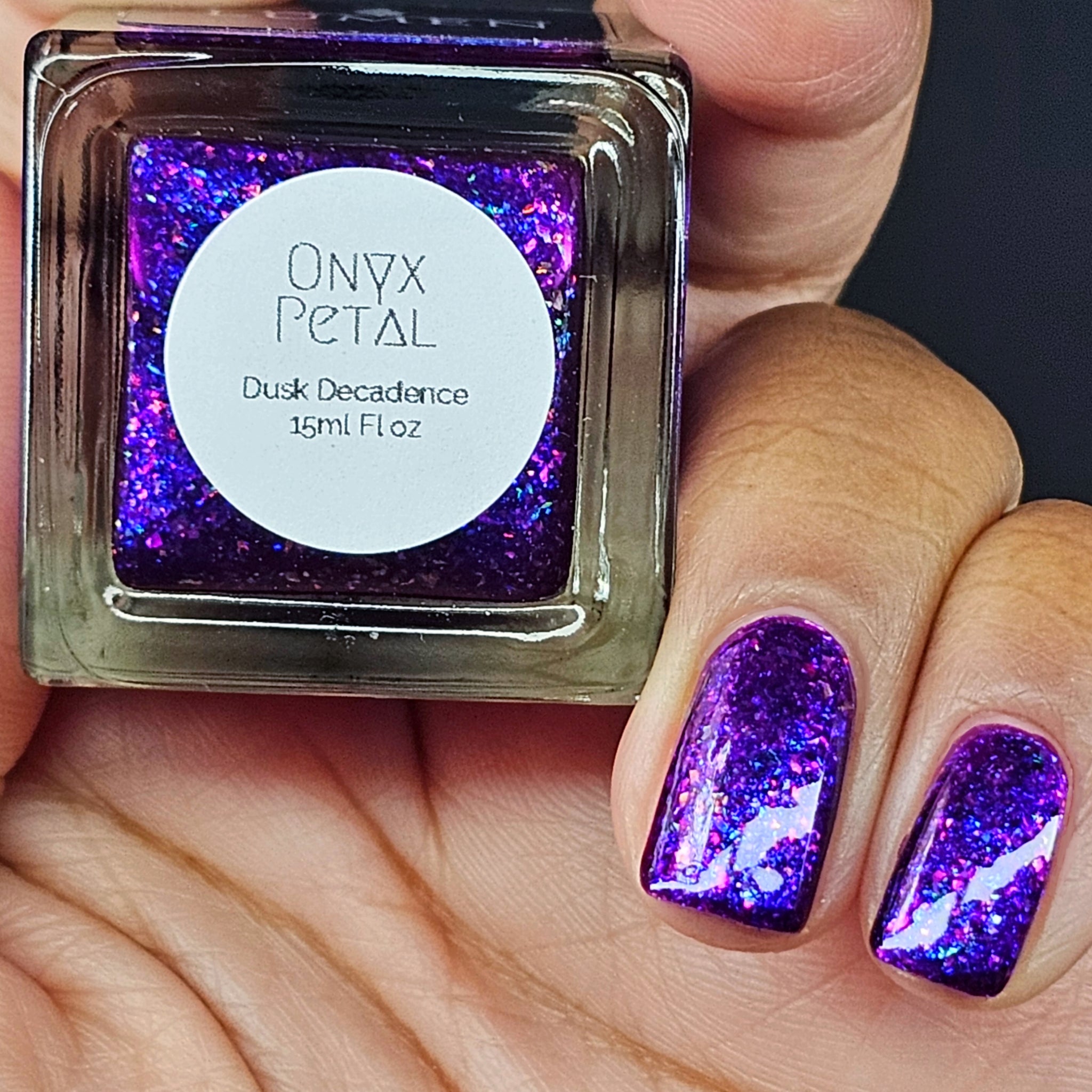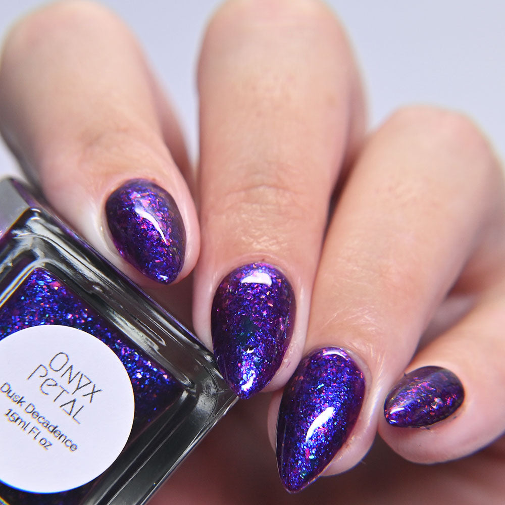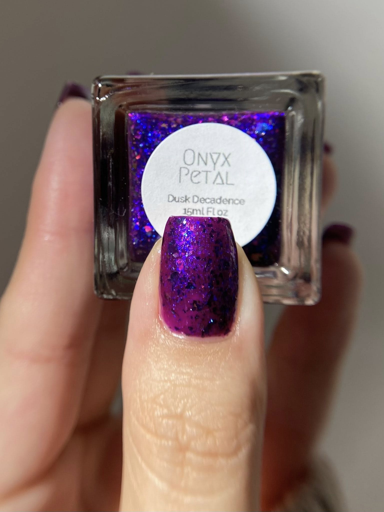 Onyx Petal is is a luminous purple jelly with color shifting flakes and a large particle shimmer that sparkles like a rare jewel.