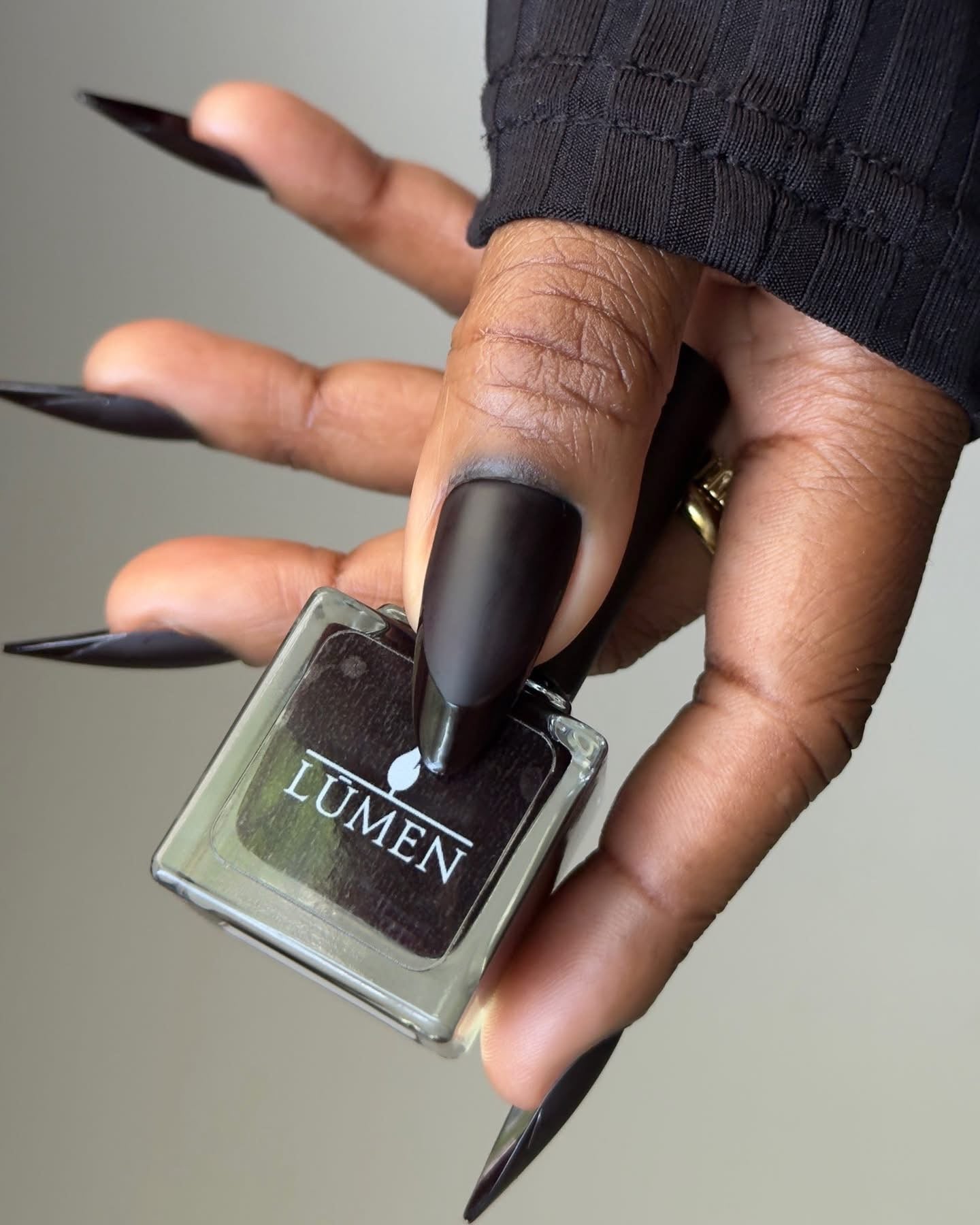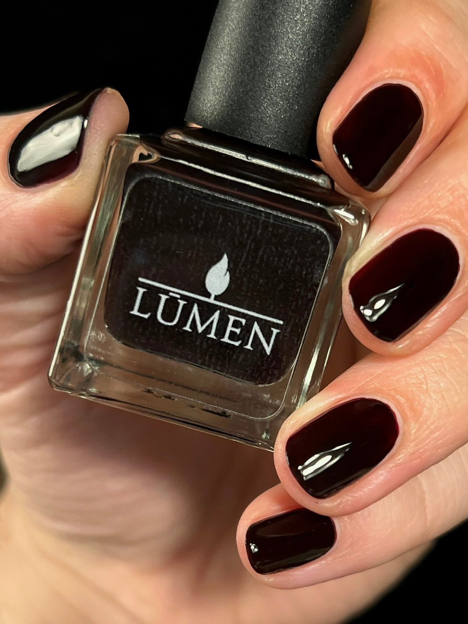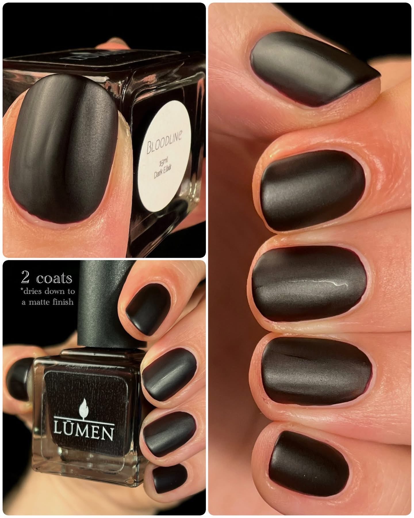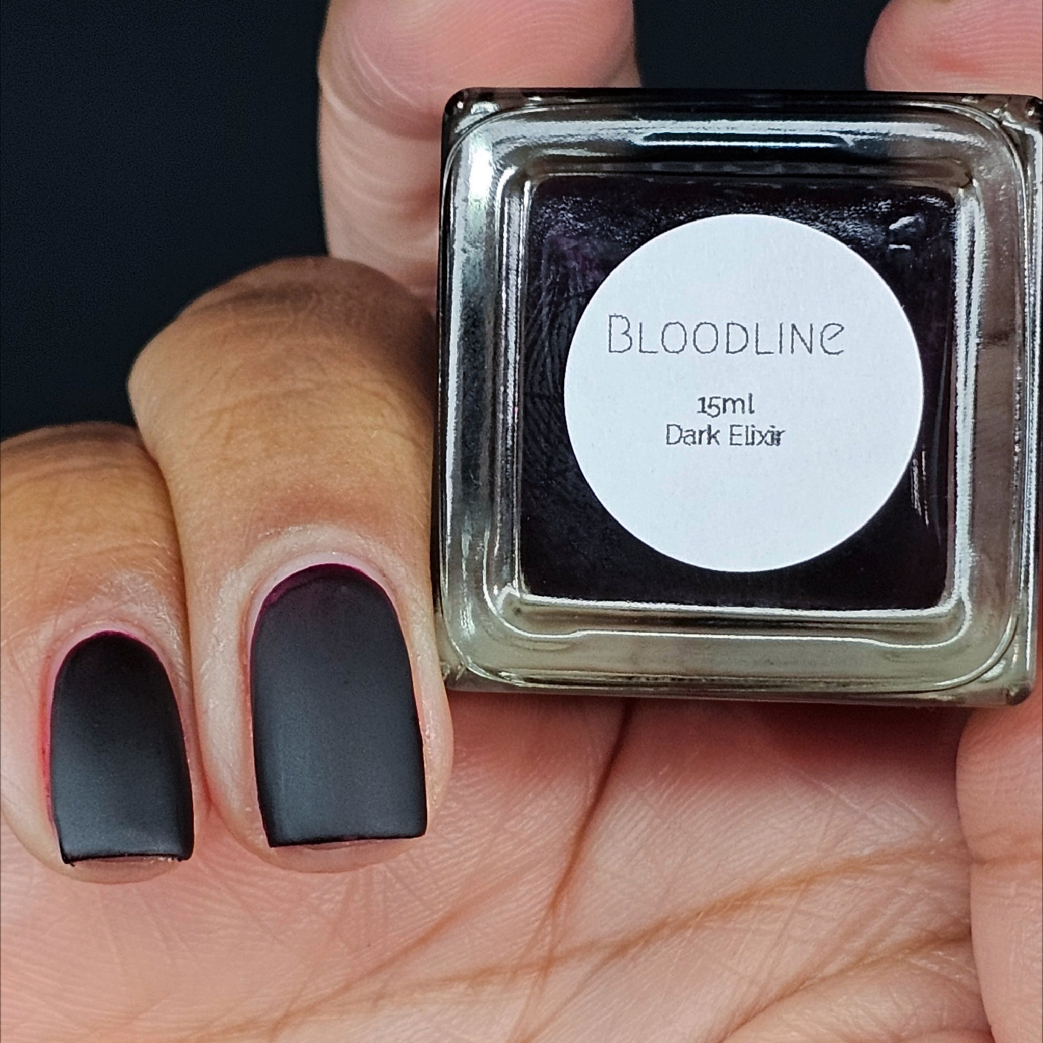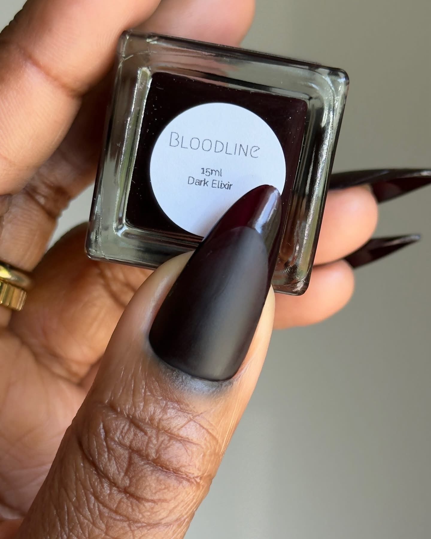 Bloodline: A dark burgundy Matte crème that dries to a soft velvet finish. Smooth, dangerous, and utterly seductive.