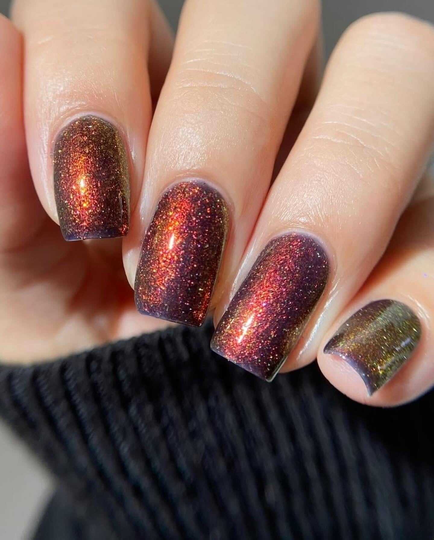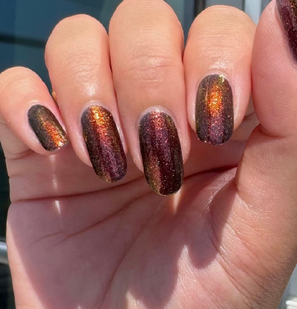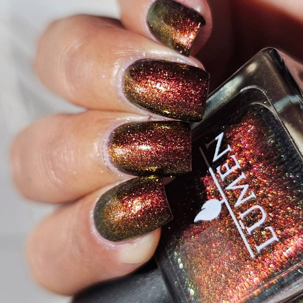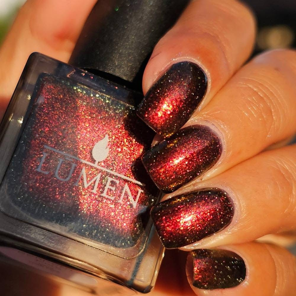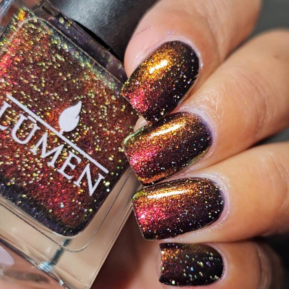Serpents Kiss: A shimmering indigo jelly with a red to gold to green shift and reflective glitter— reptilian, slinky, and hypnotic under firelight or flash.