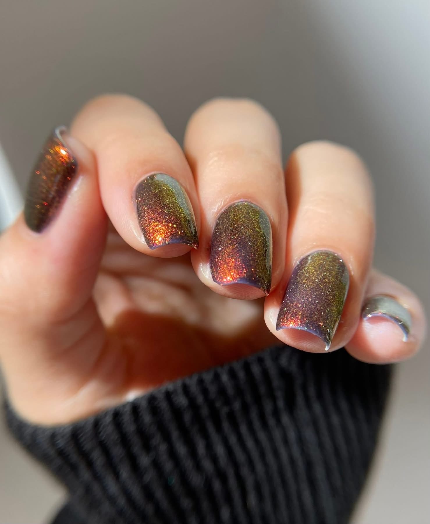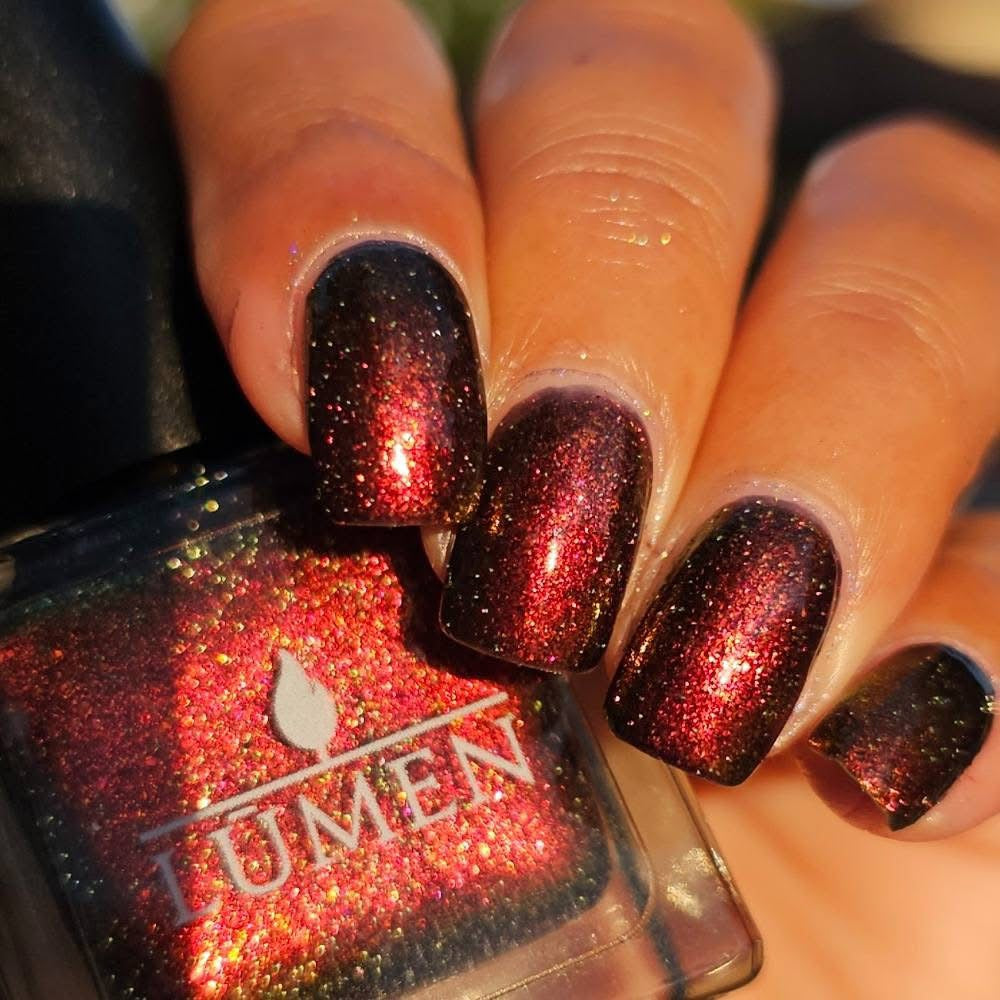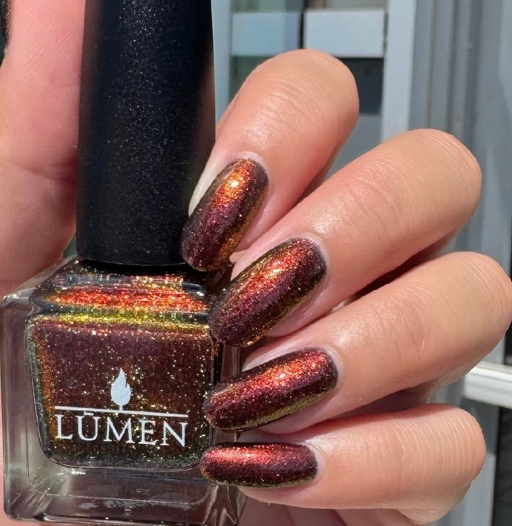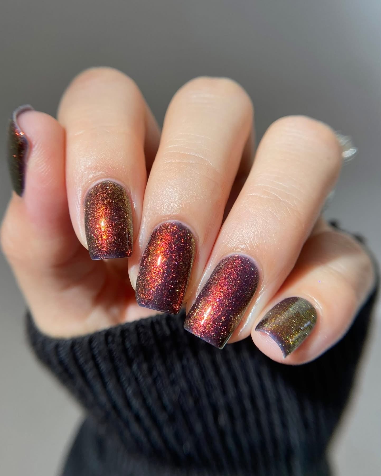 Serpents Kiss: A shimmering indigo jelly with a red to gold to green shift and reflective glitter— reptilian, slinky, and hypnotic under firelight or flash.