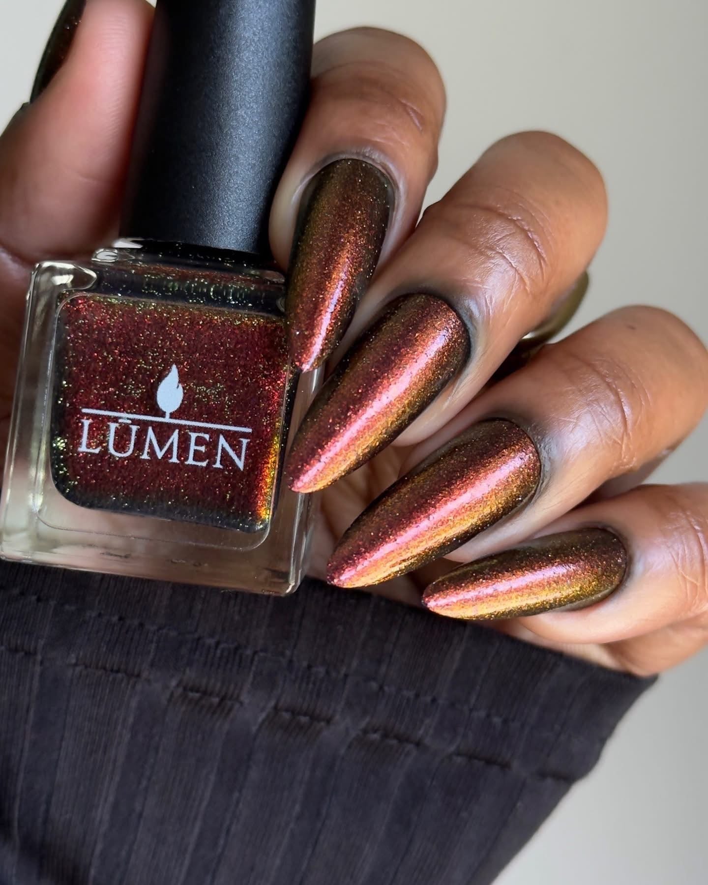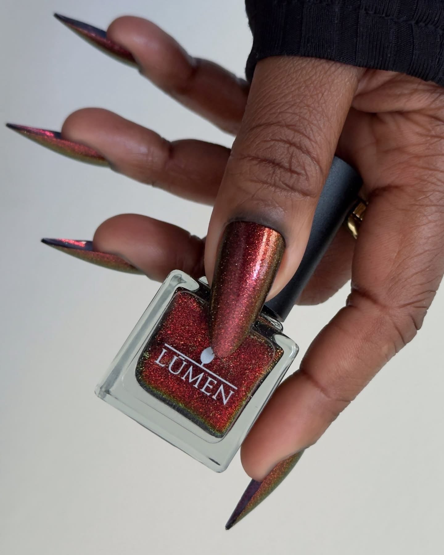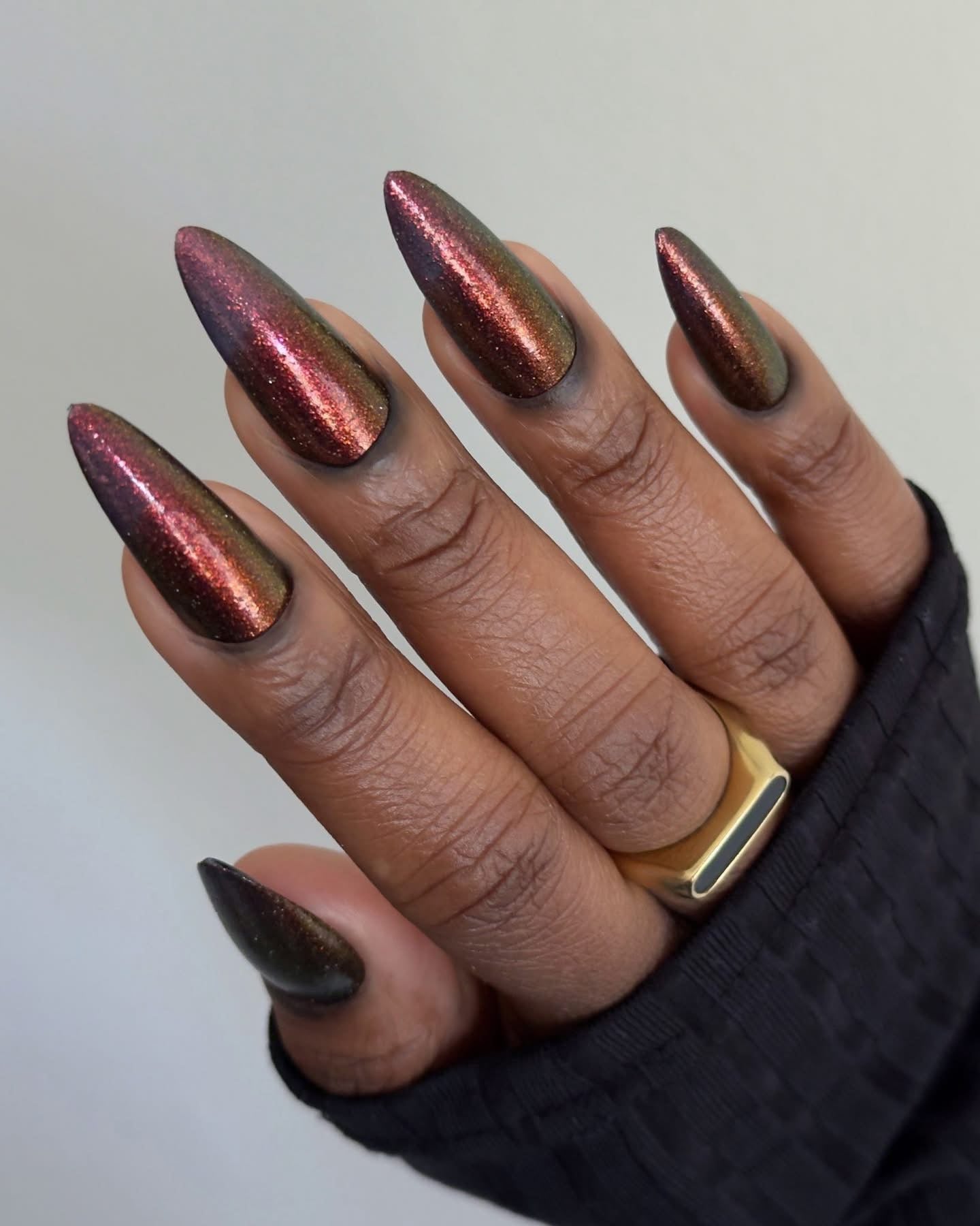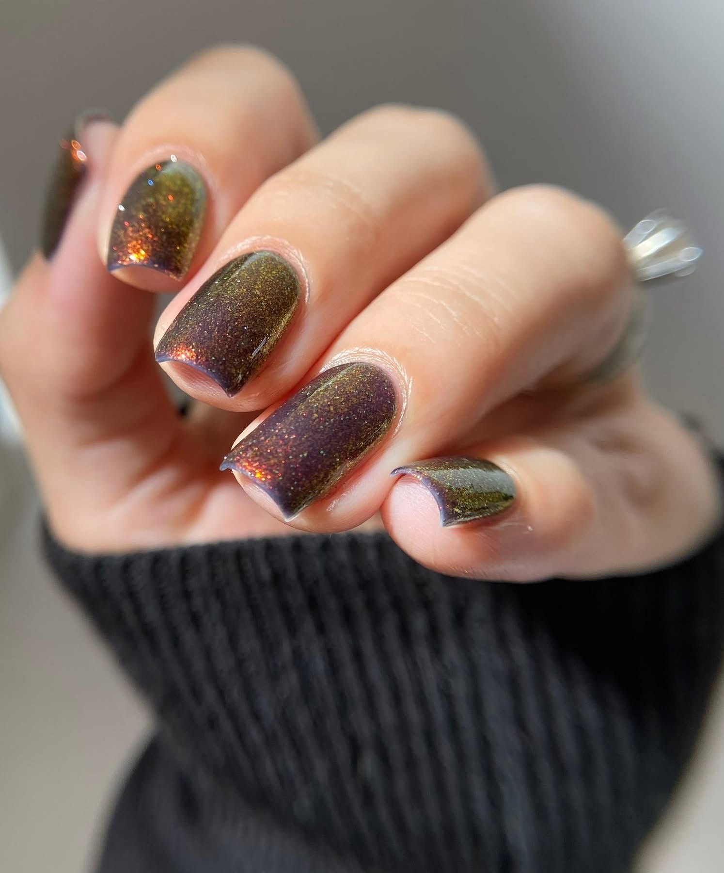 Serpents Kiss: A shimmering indigo jelly with a red to gold to green shift and reflective glitter— reptilian, slinky, and hypnotic under firelight or flash.