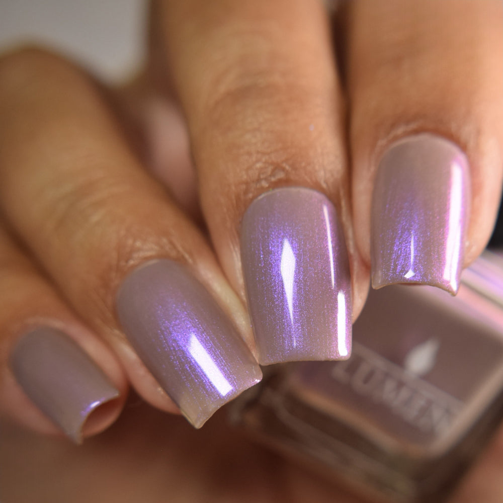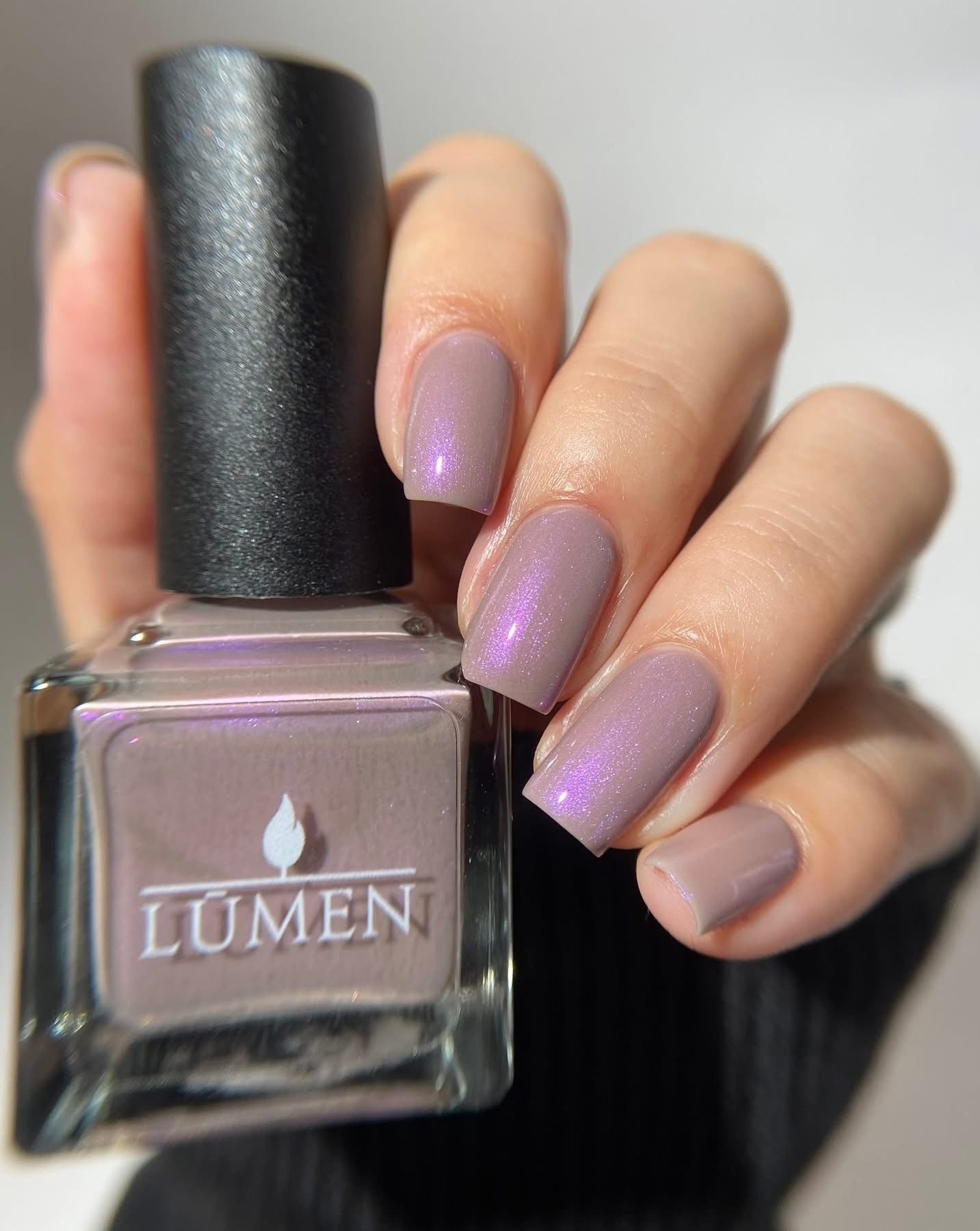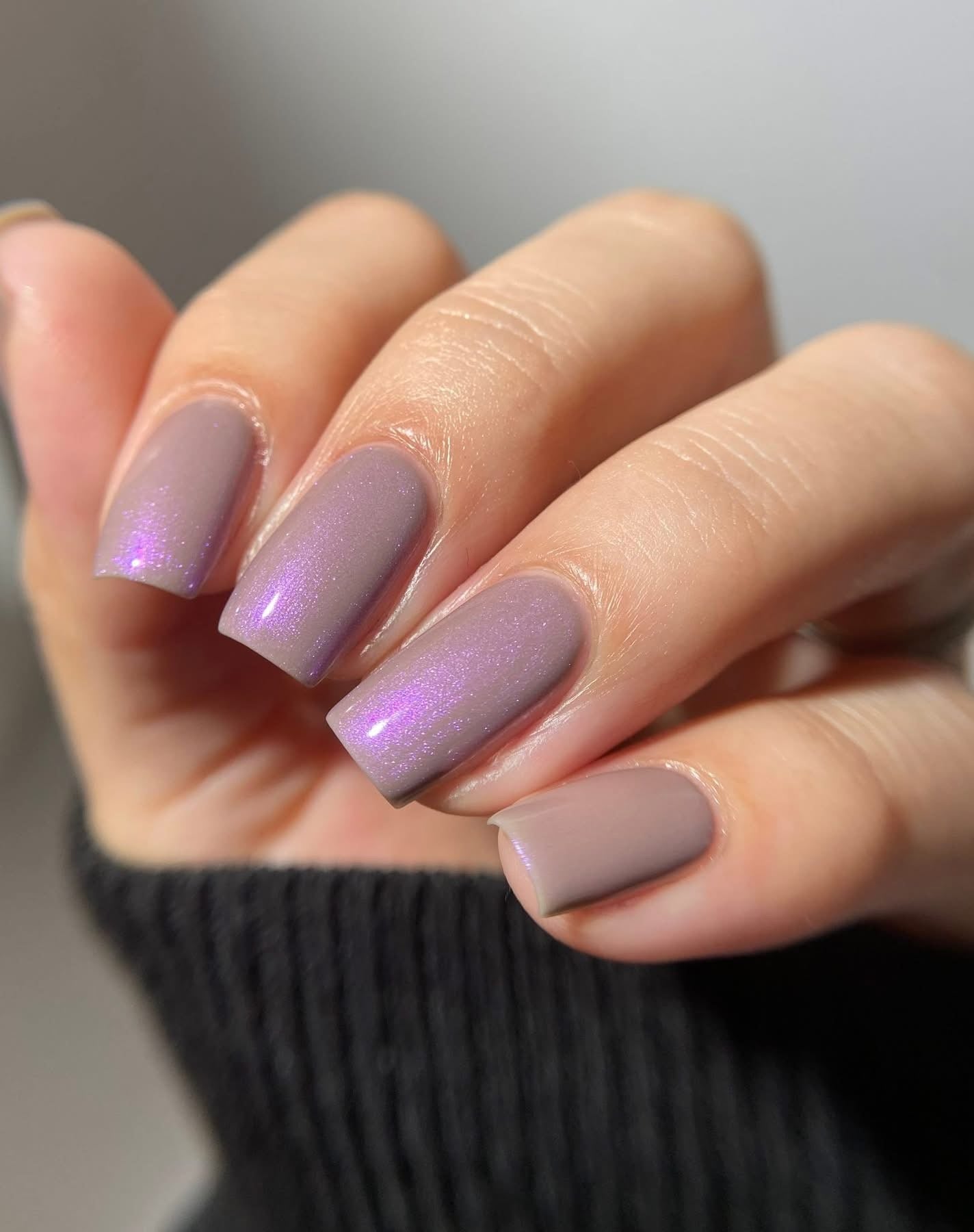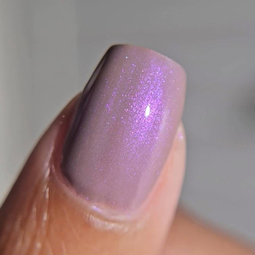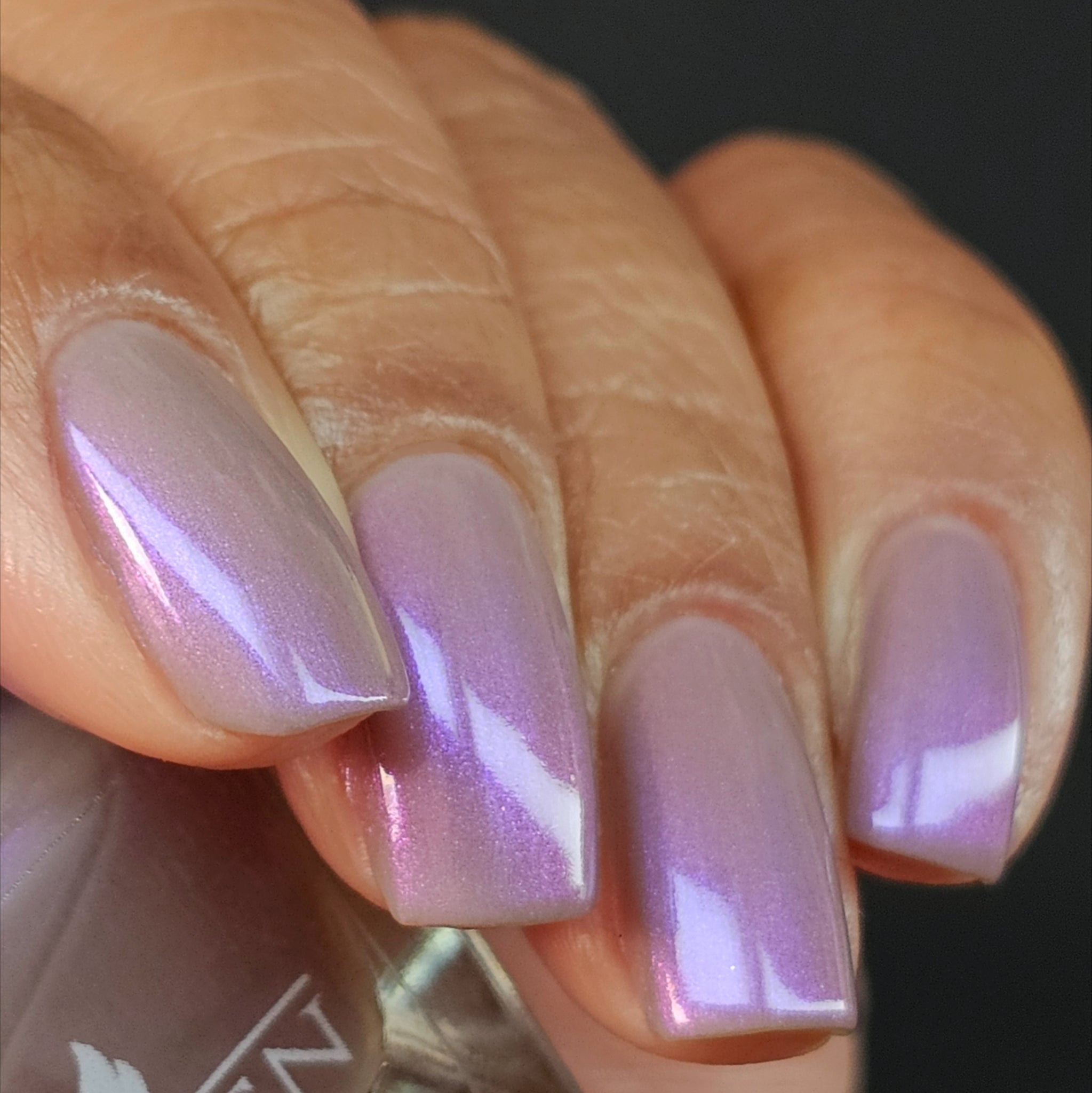 Venom & Vanilla is a smoky taupe-grey with a ghostly purple pearl shimmer. Equal parts dangerous and divine — soft with a bite