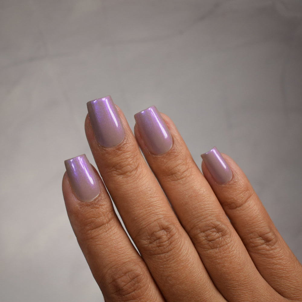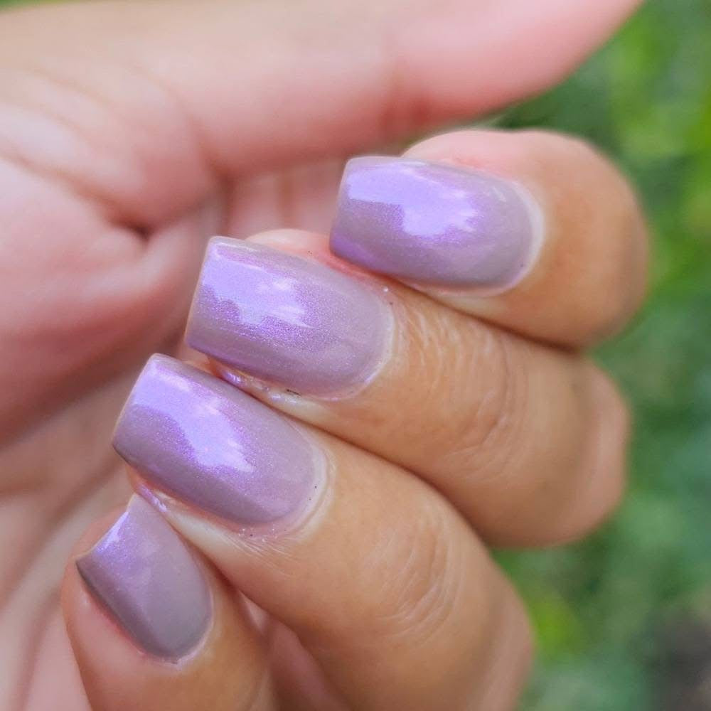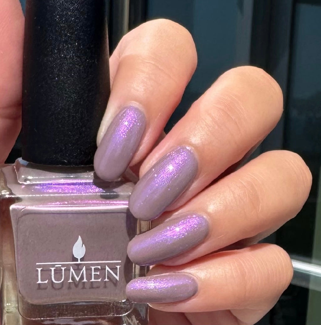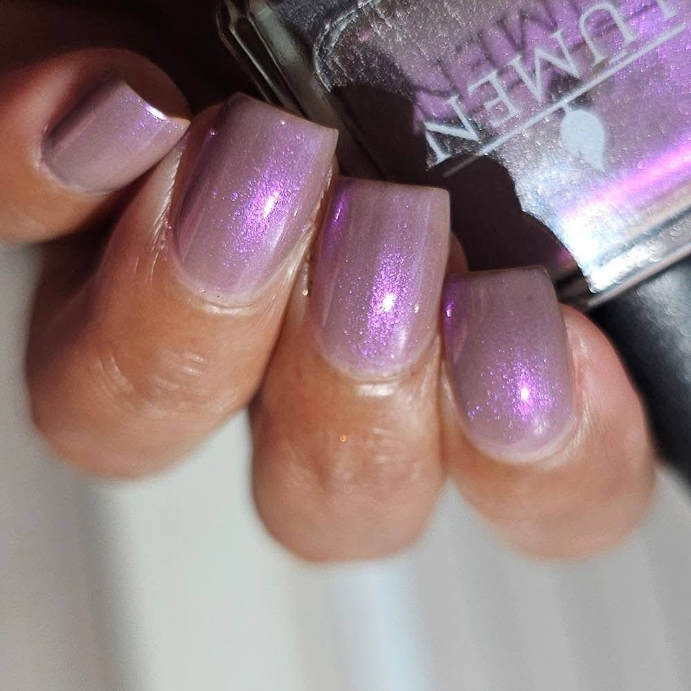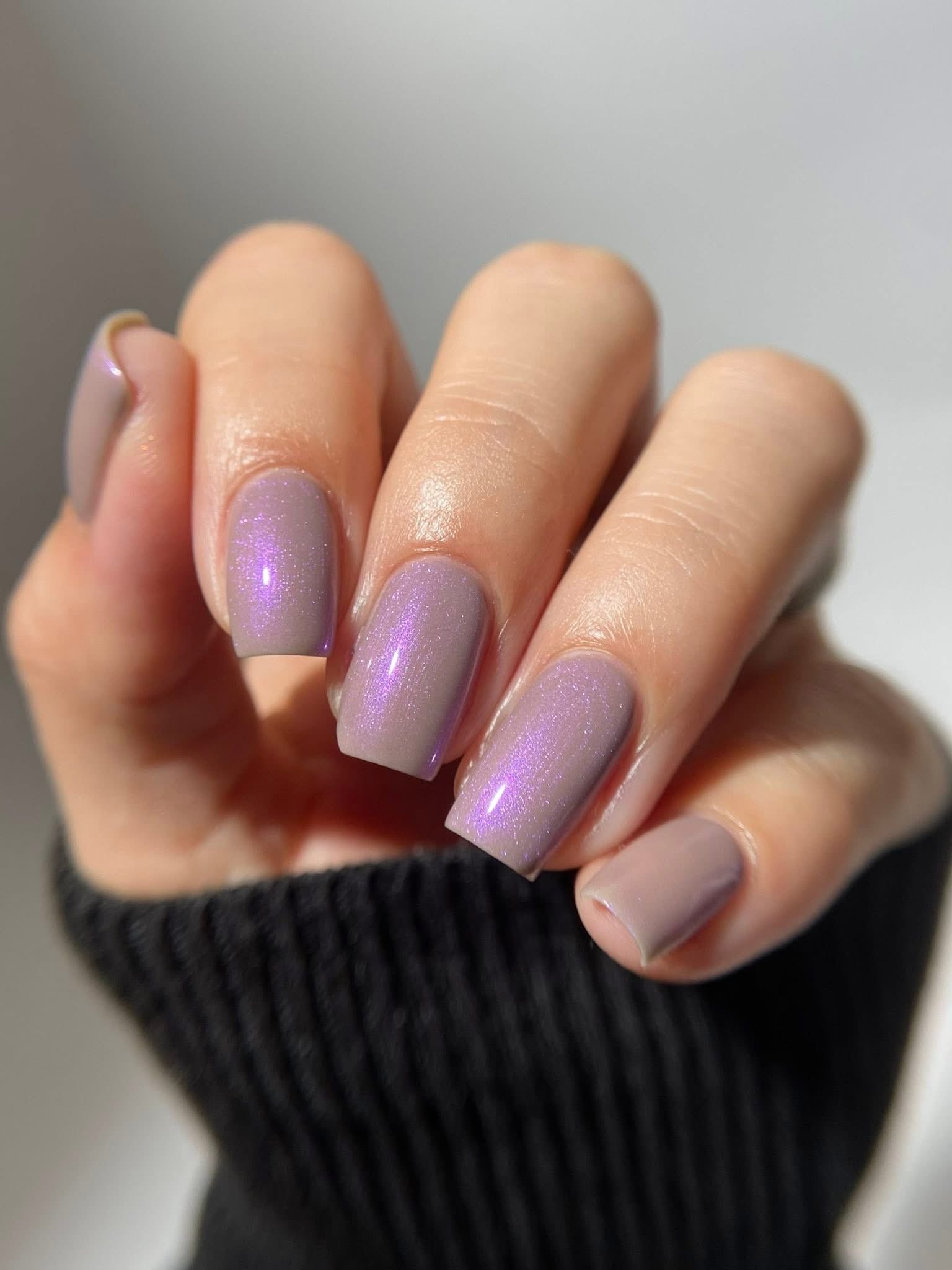 Venom & Vanilla is a smoky taupe-grey with a ghostly purple pearl shimmer. Equal parts dangerous and divine — soft with a bite