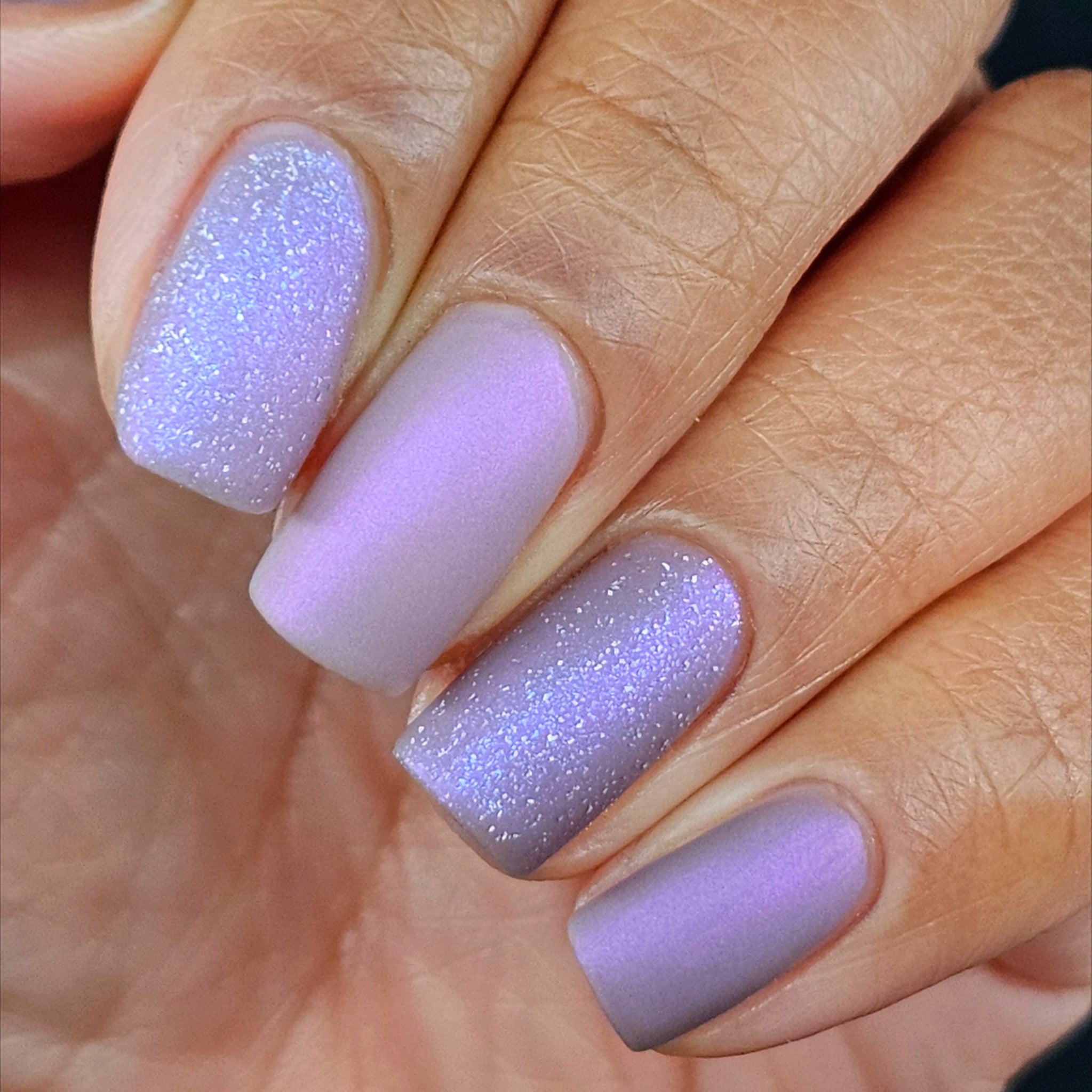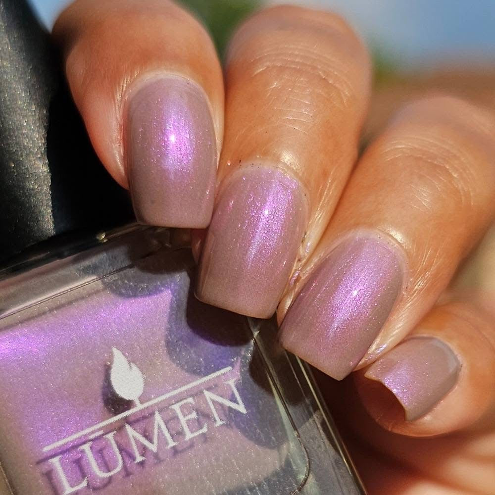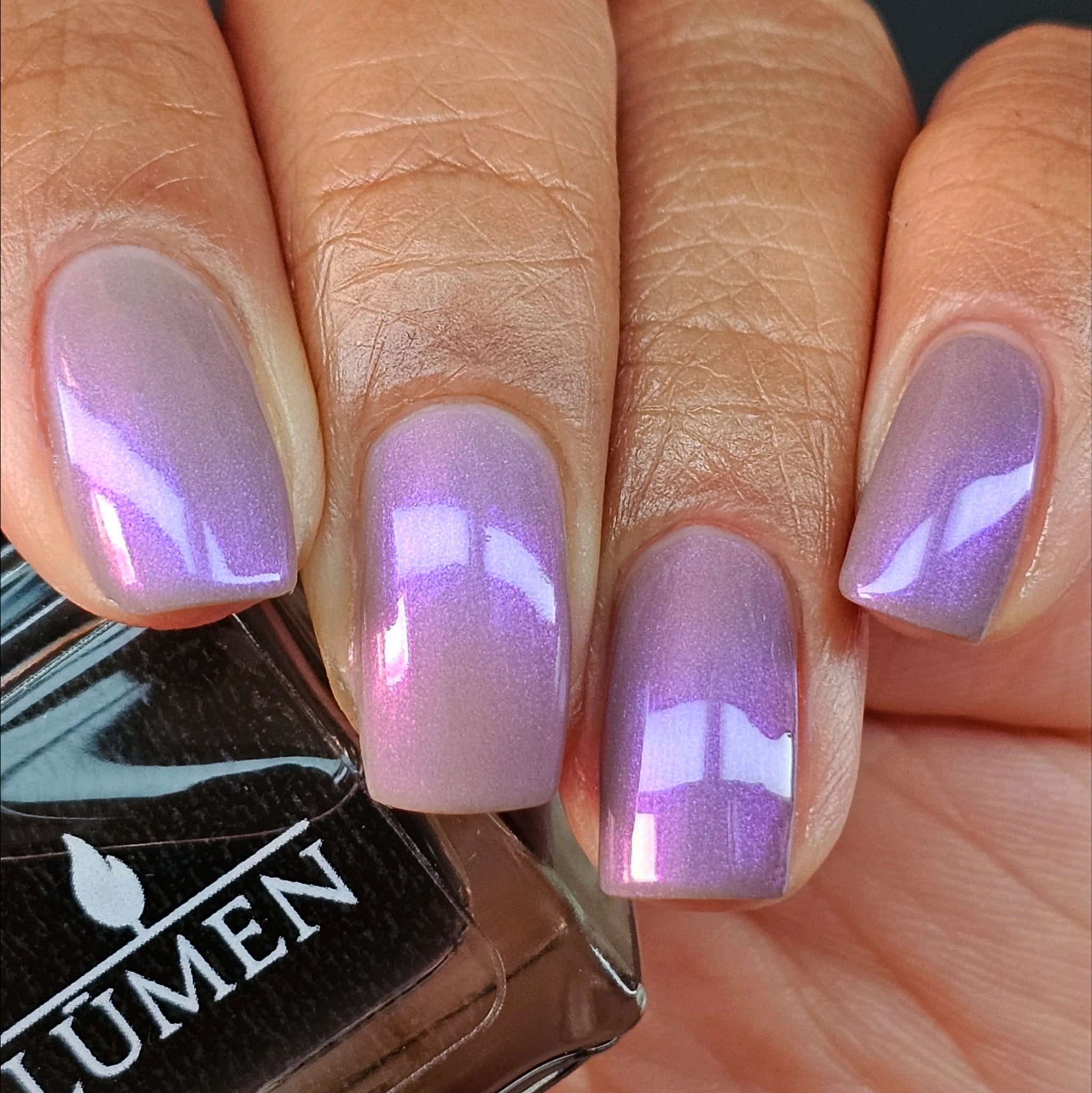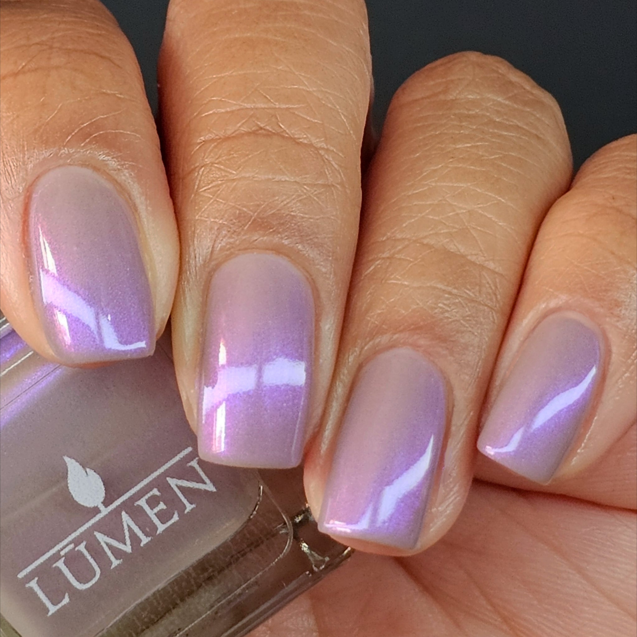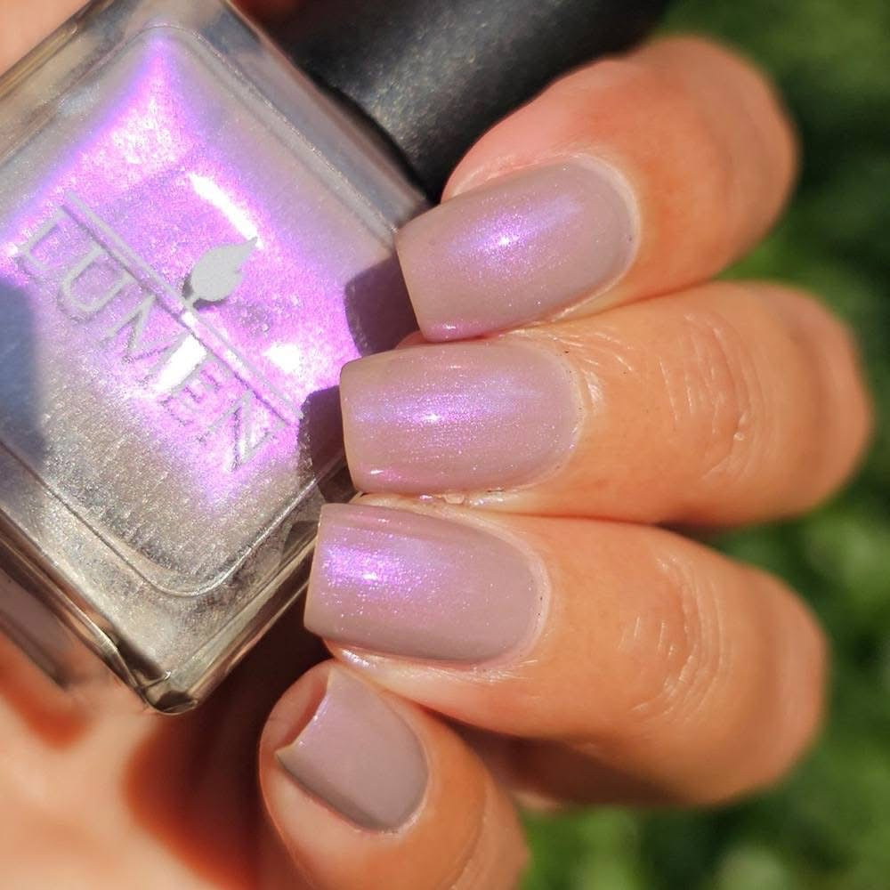 Venom & Vanilla is a smoky taupe-grey with a ghostly purple pearl shimmer. Equal parts dangerous and divine — soft with a bite