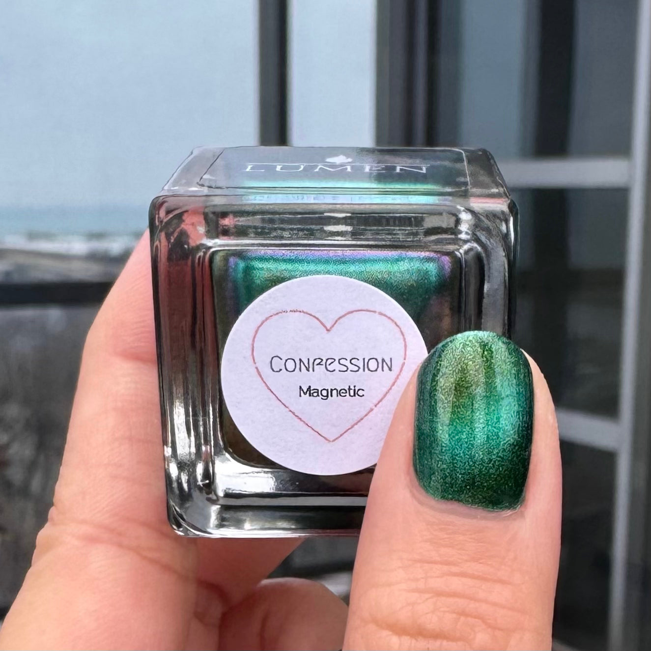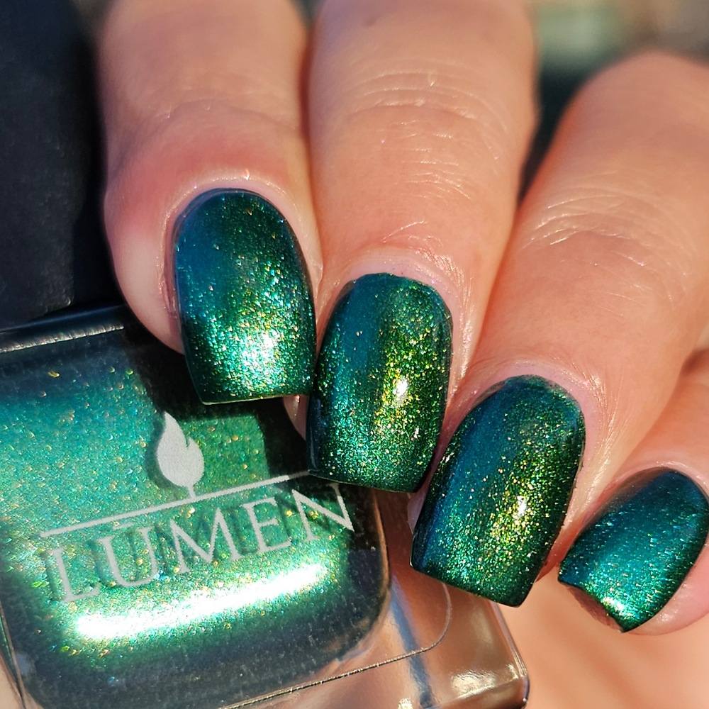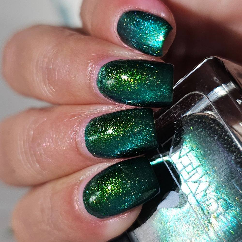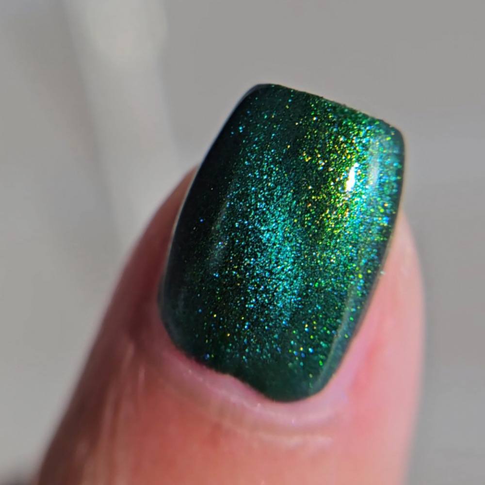 This sultry green magnetic polish comes alive with a luminous, shifting shimmer that moves with the light deep, dimensional, and quietly intoxicating. Confession is the kind of green that feels perfect for any season, for late nights, stolen glances, and truths that can’t stay hidden.