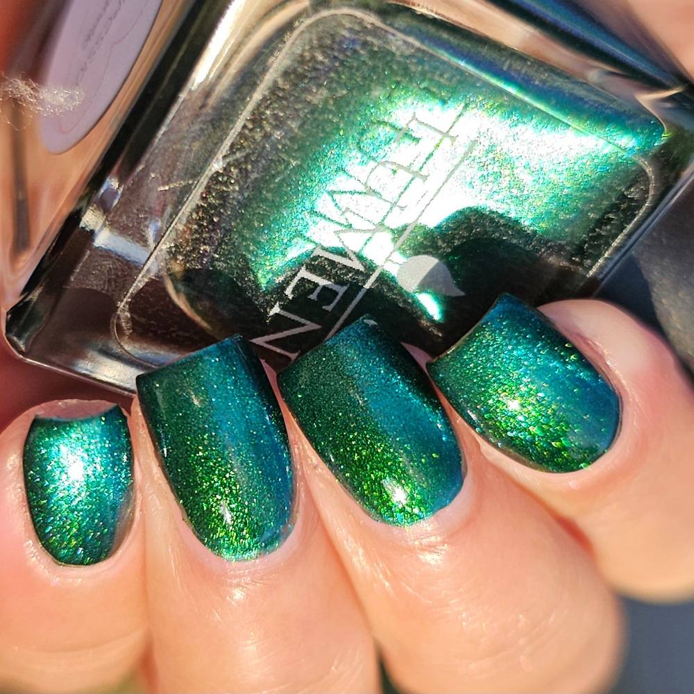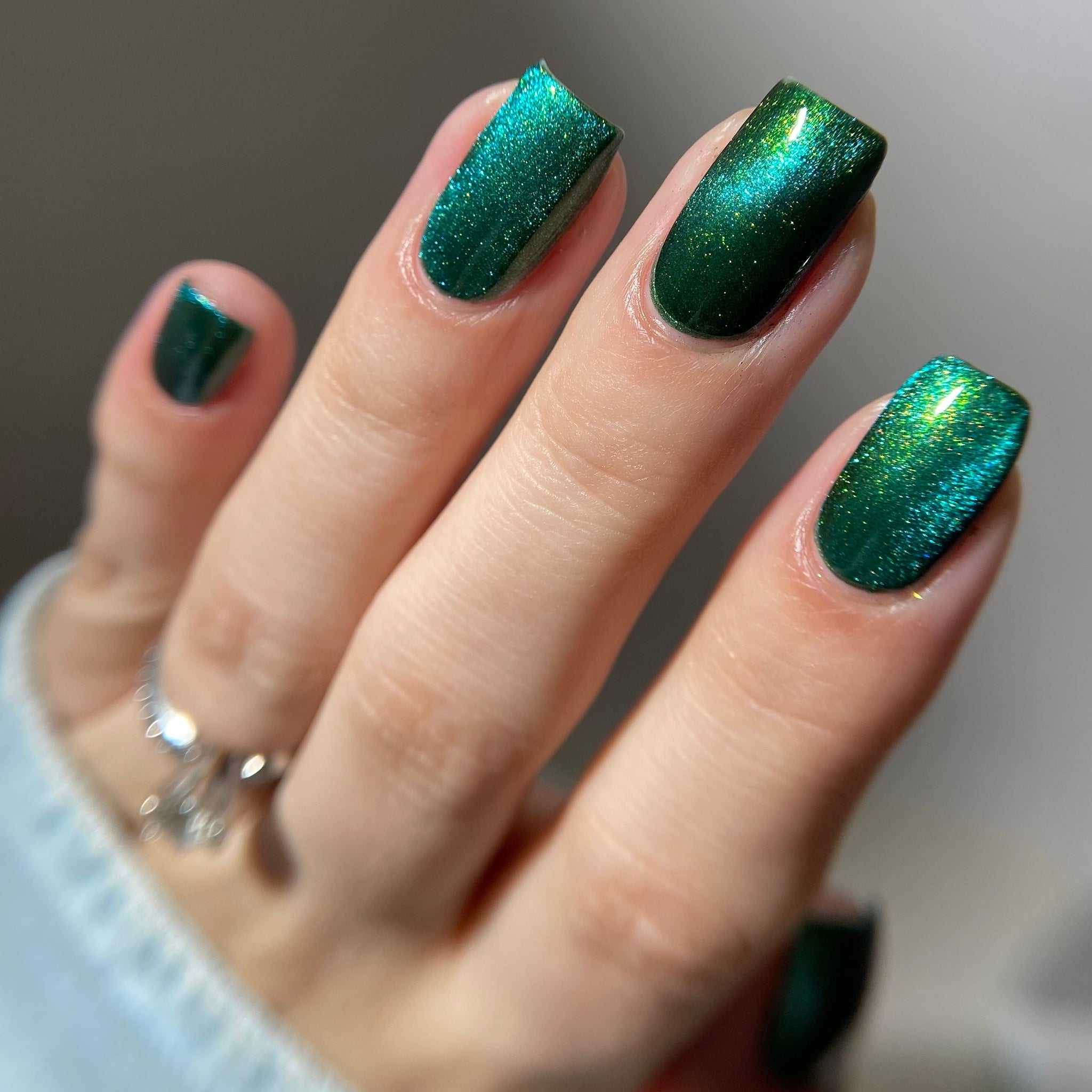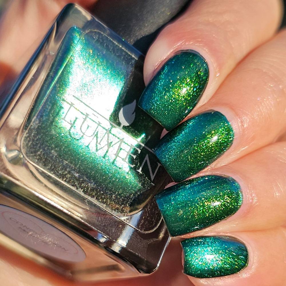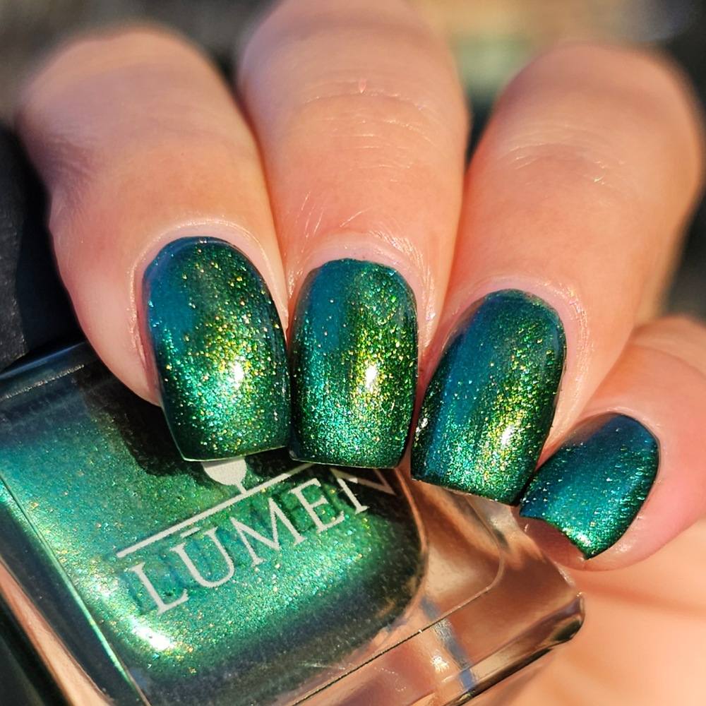 This sultry green magnetic polish comes alive with a luminous, shifting shimmer that moves with the light deep, dimensional, and quietly intoxicating. Confession is the kind of green that feels perfect for any season, for late nights, stolen glances, and truths that can’t stay hidden.