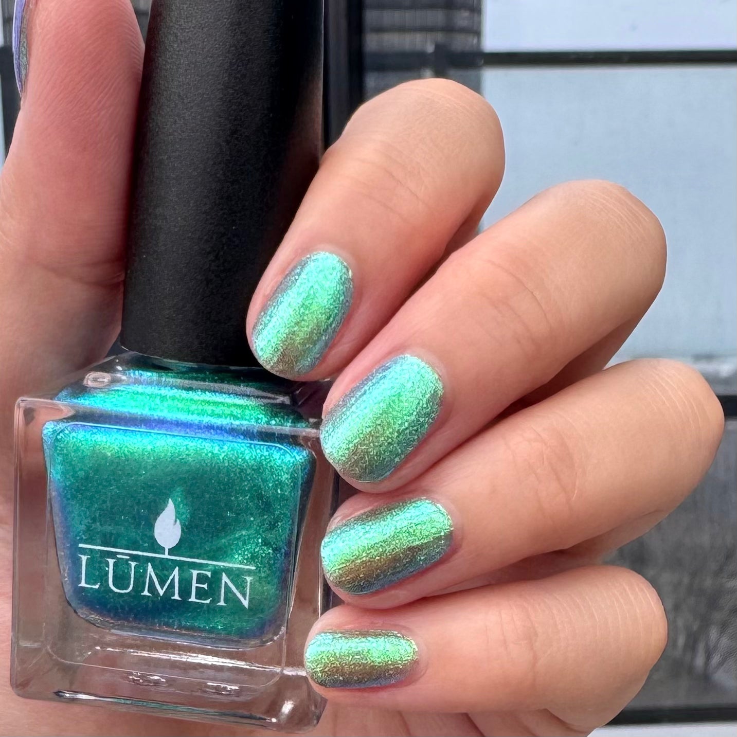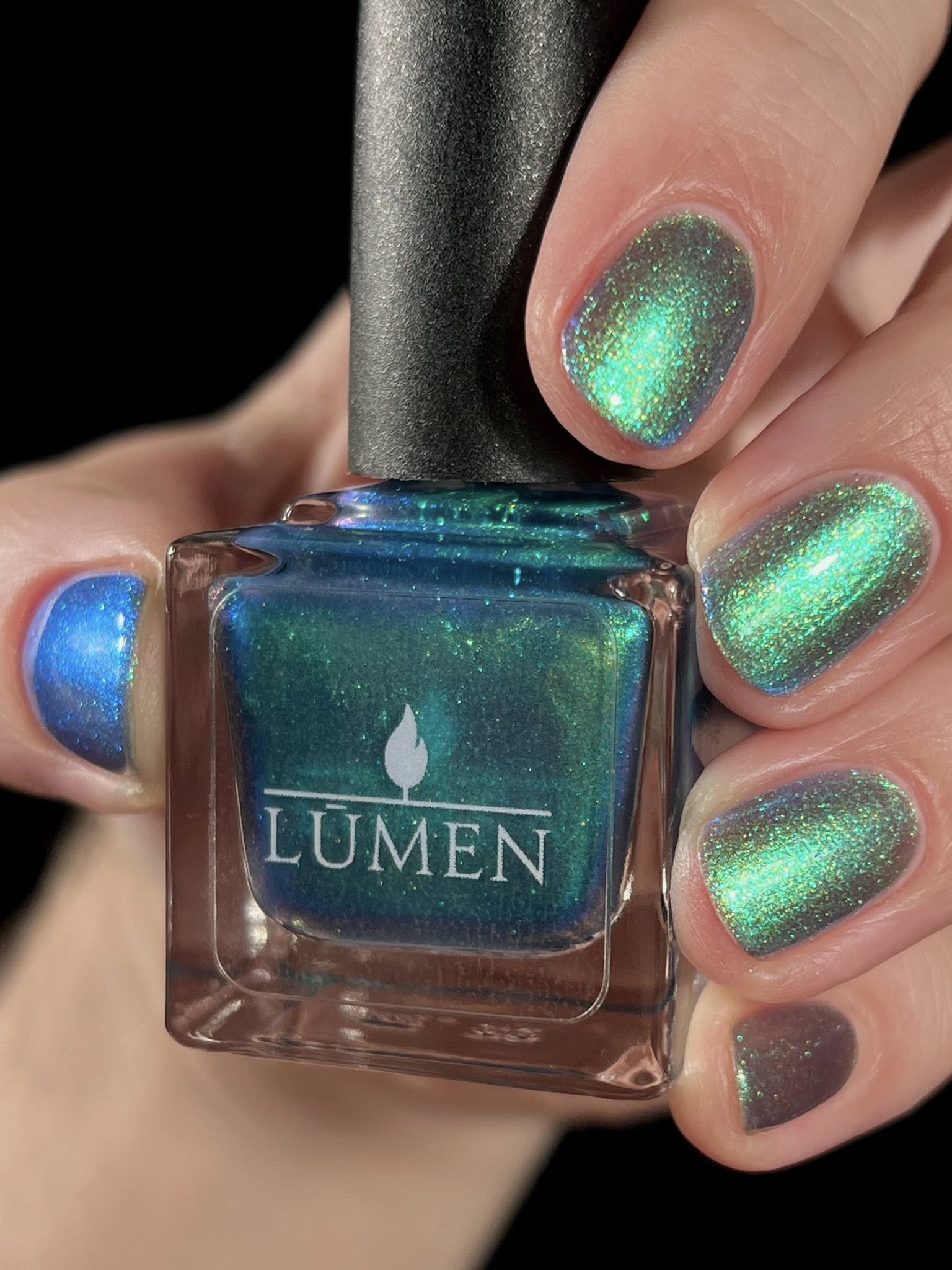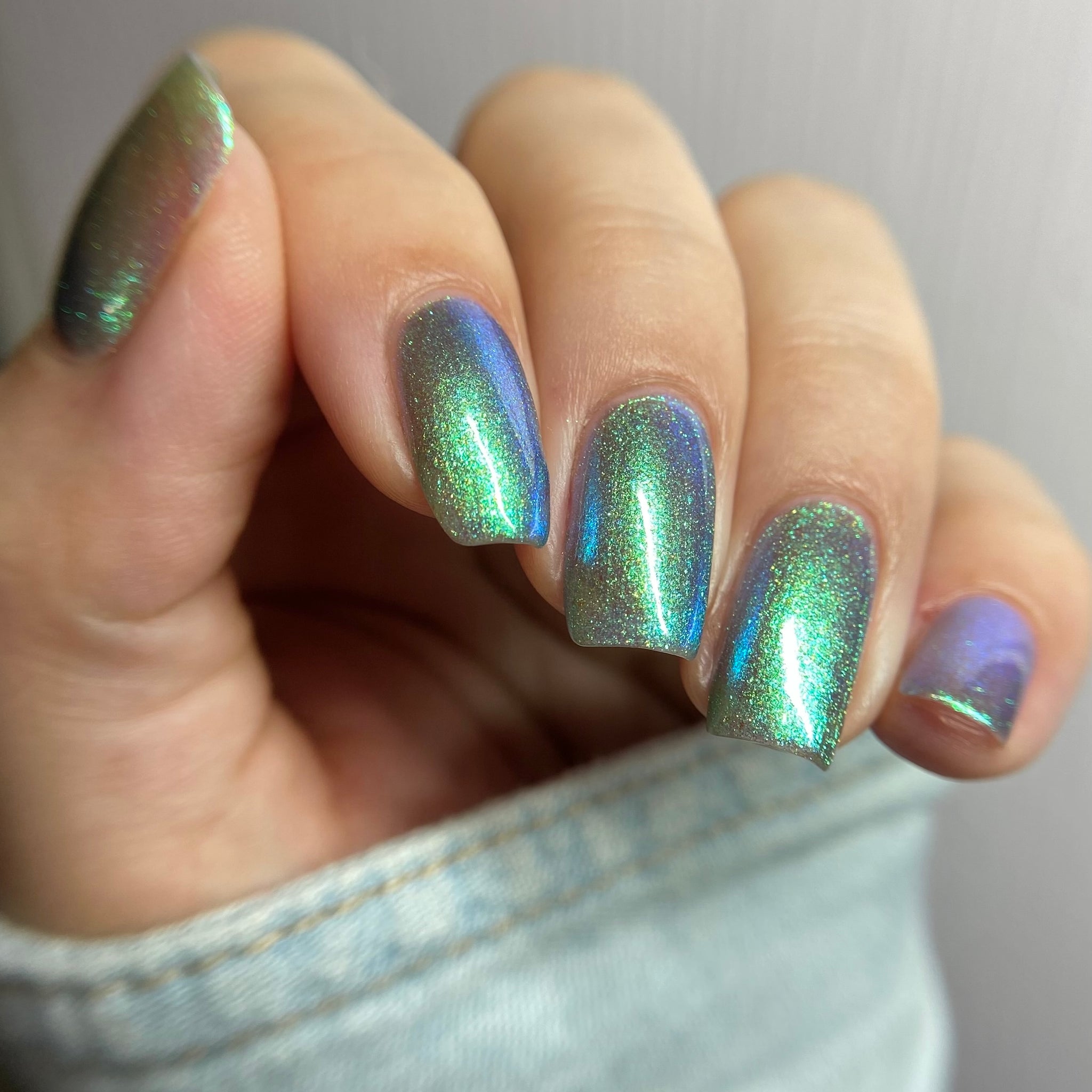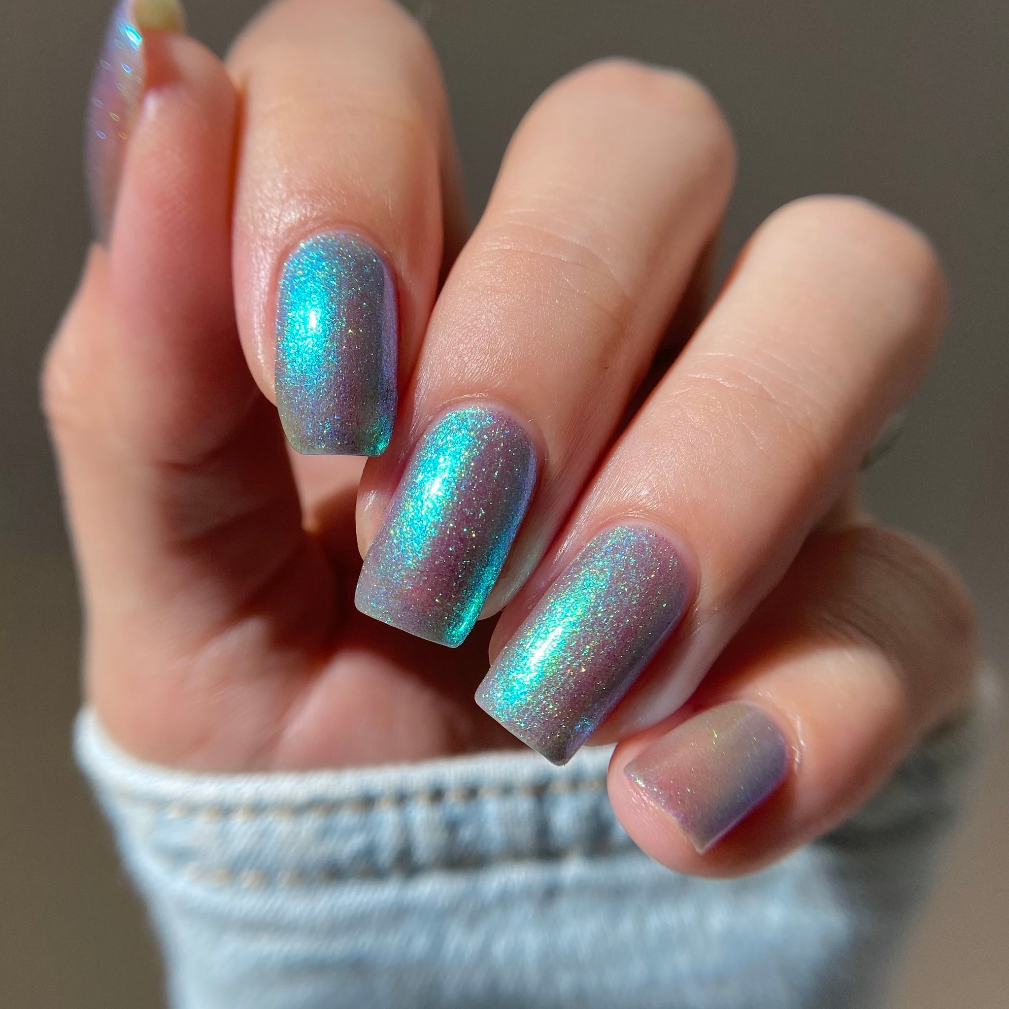 Crush is a luminous blue-to-green polish that shifts with the light.The base begins as a deep, romantic blue, blooming into rich green flashes as your nails move, creating a dimensional, modern finish that feels both mysterious and magnetic. It’s bold without being loud, nostalgic yet undeniably now—perfect for those who fall slowly but deeply.