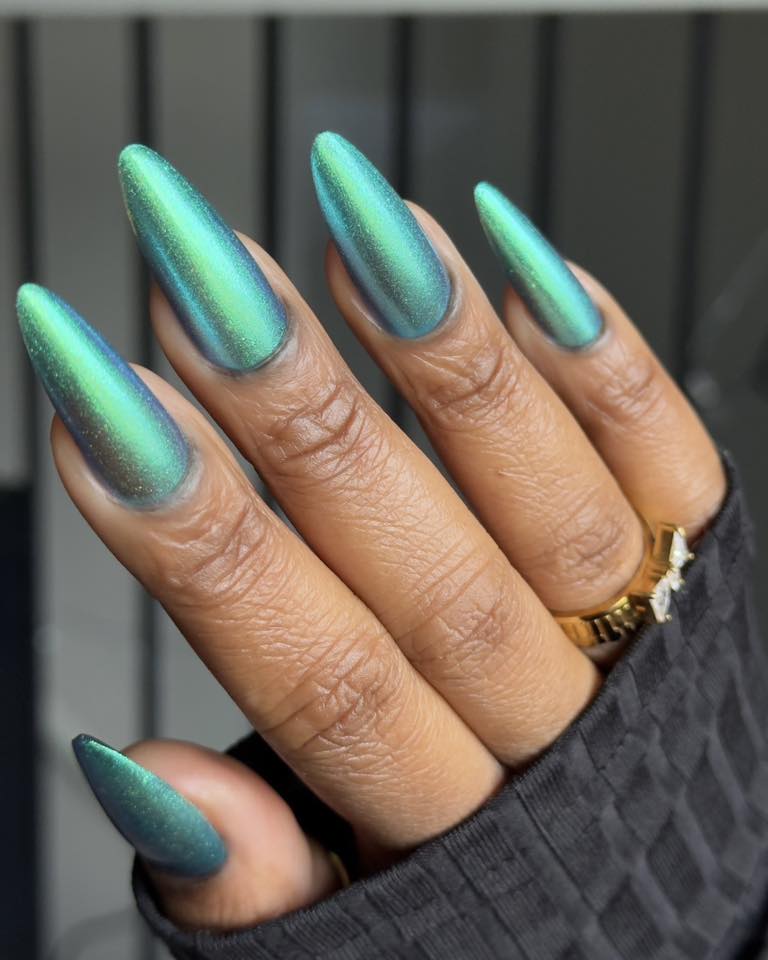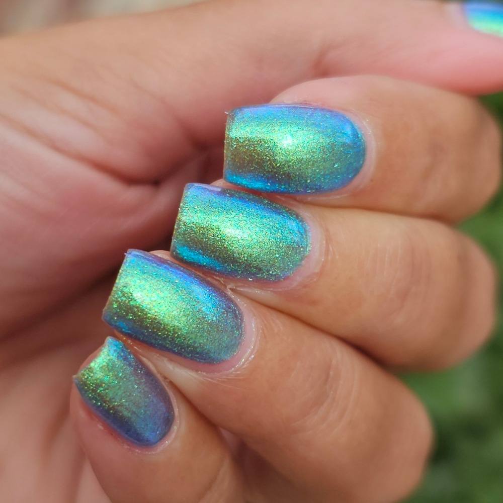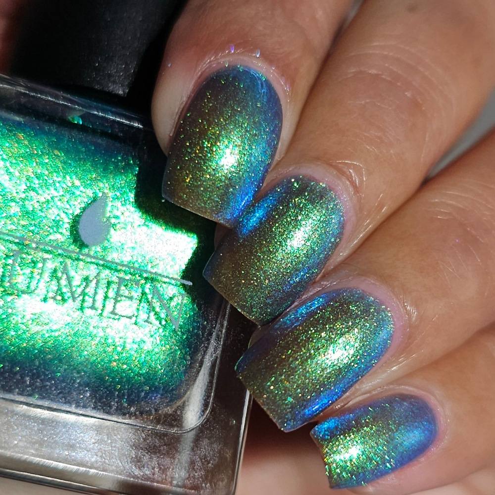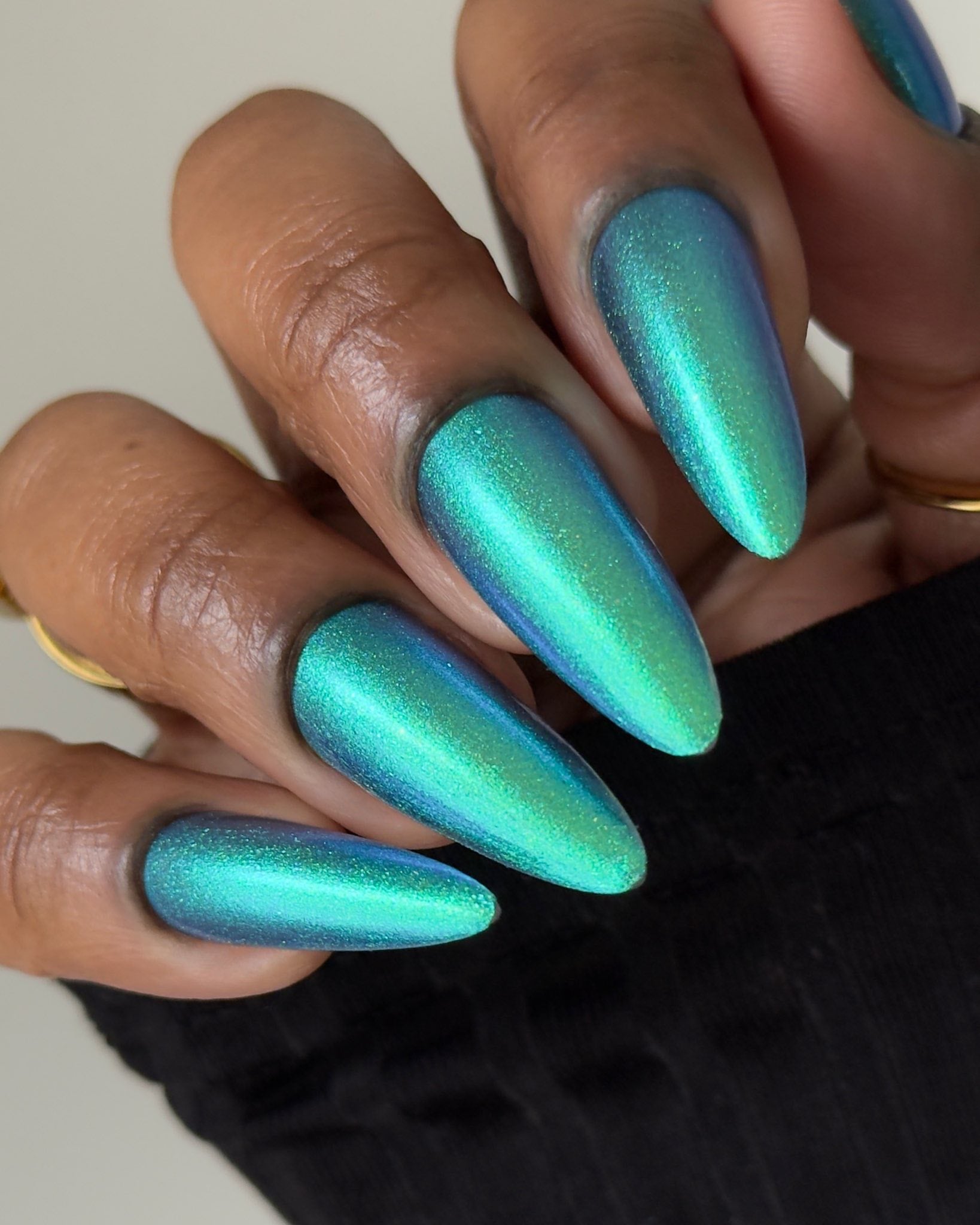 Crush is a luminous blue-to-green polish that shifts with the light.The base begins as a deep, romantic blue, blooming into rich green flashes as your nails move, creating a dimensional, modern finish that feels both mysterious and magnetic. It’s bold without being loud, nostalgic yet undeniably now—perfect for those who fall slowly but deeply.