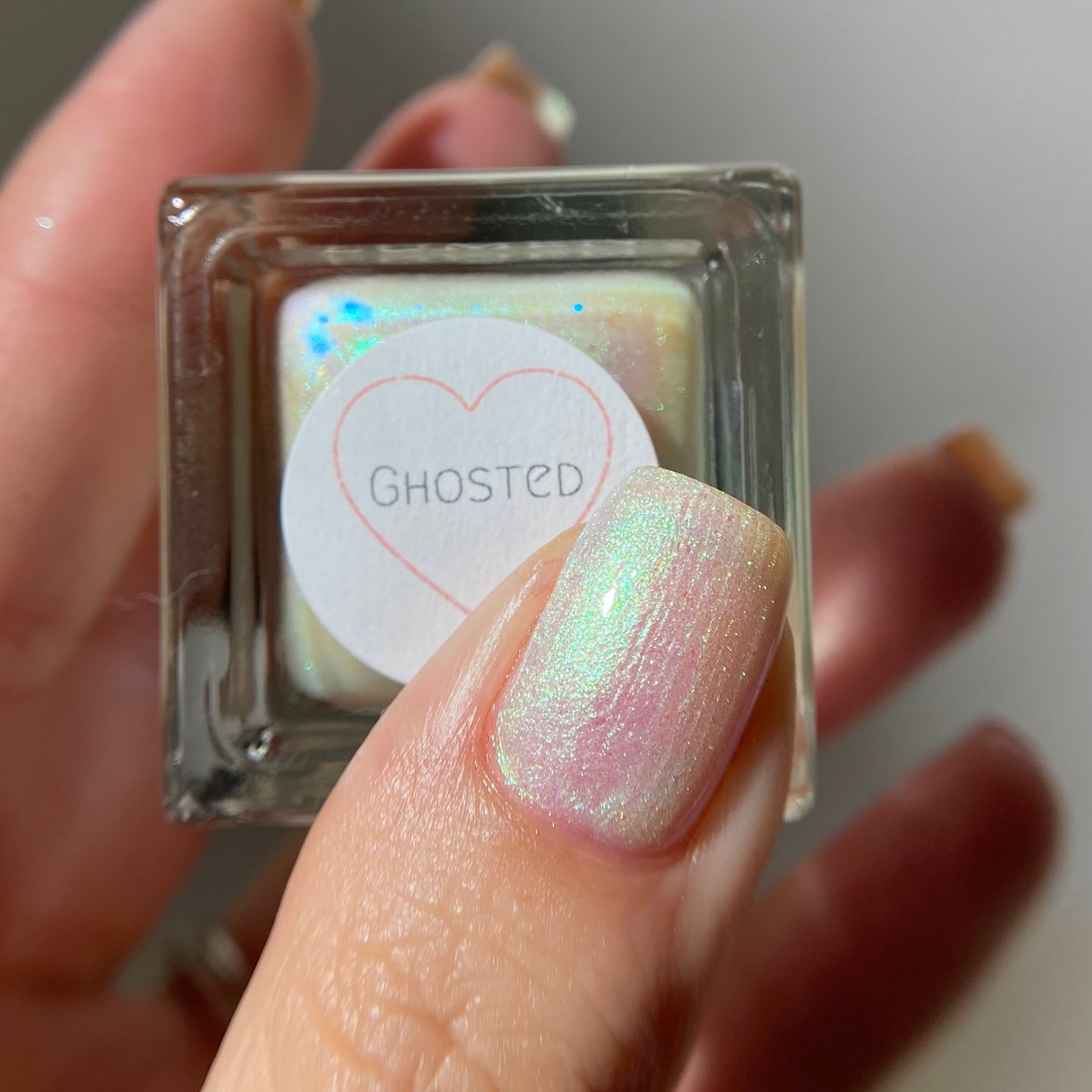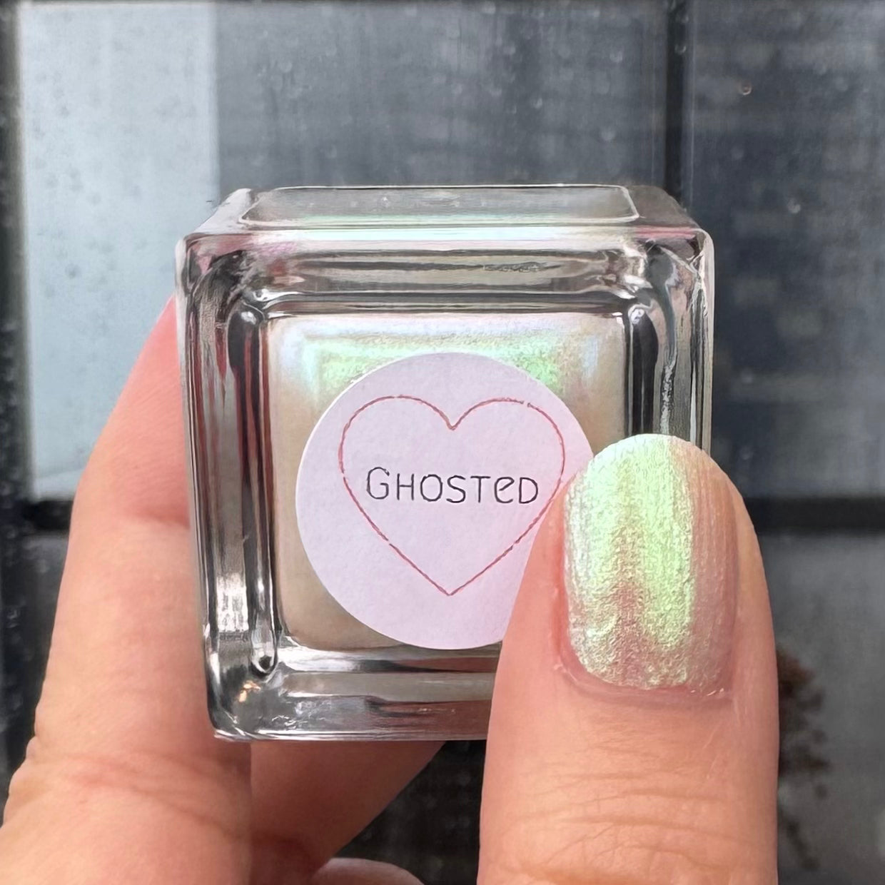 Hauntingly Beautiful, Ghosted is unforgettable. With an other worldly blue to green shift in a milky crelly base Ghosted demands attention without having to say a word.