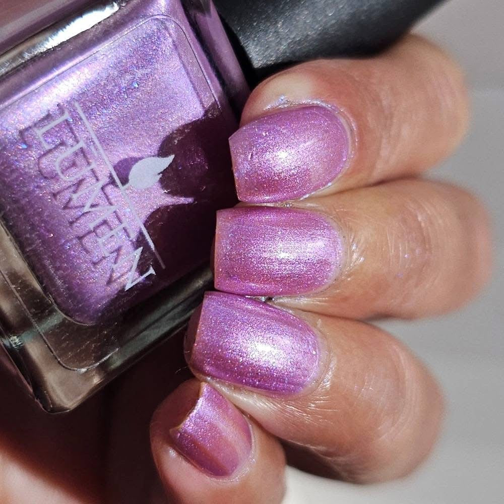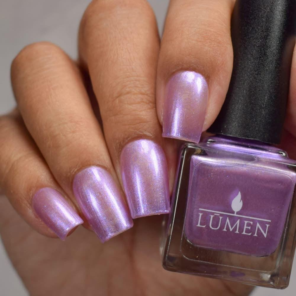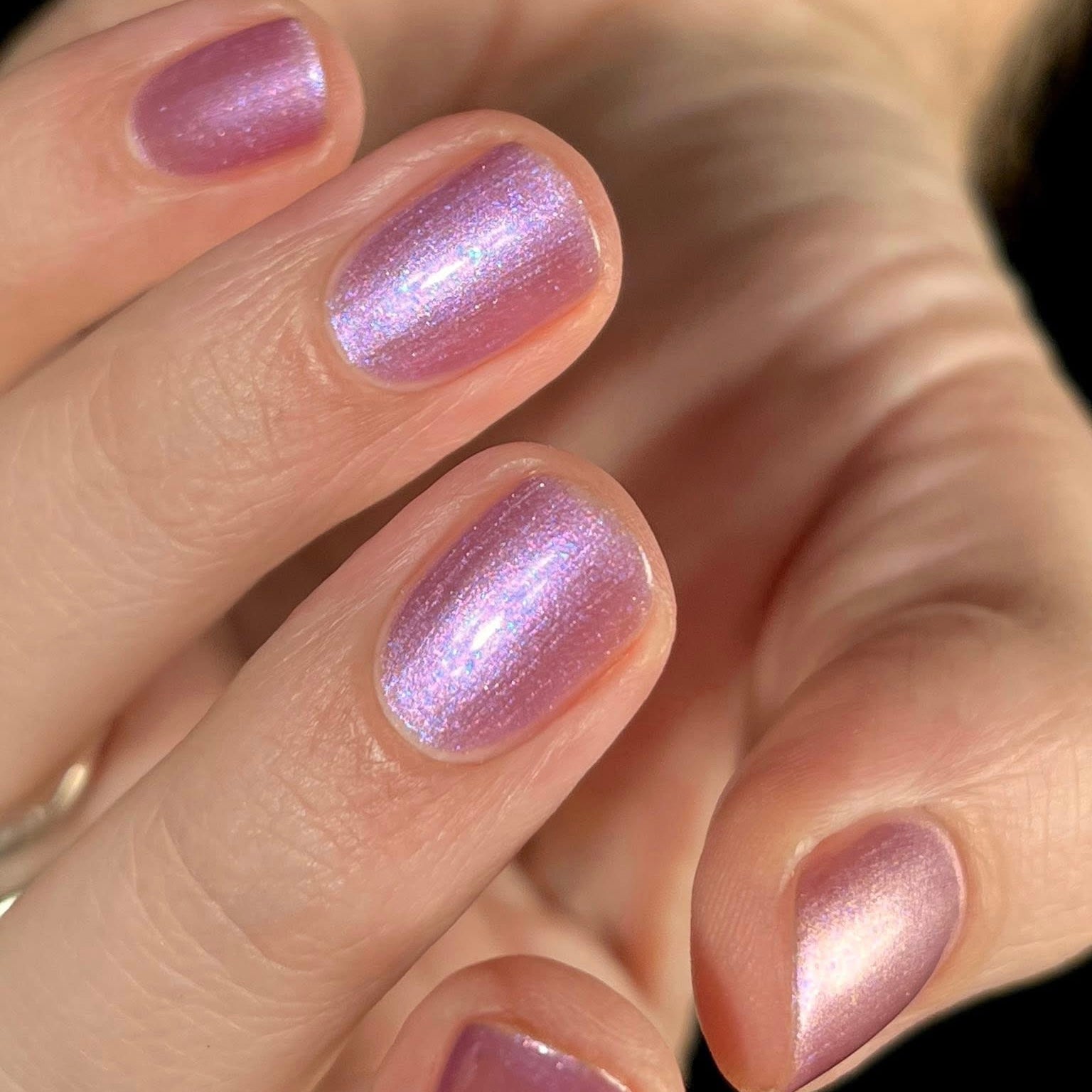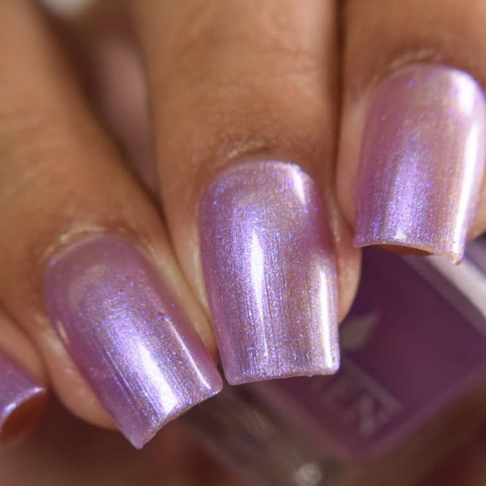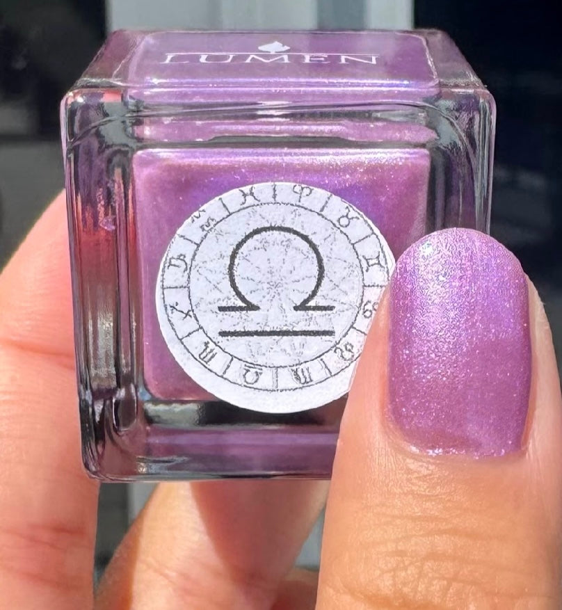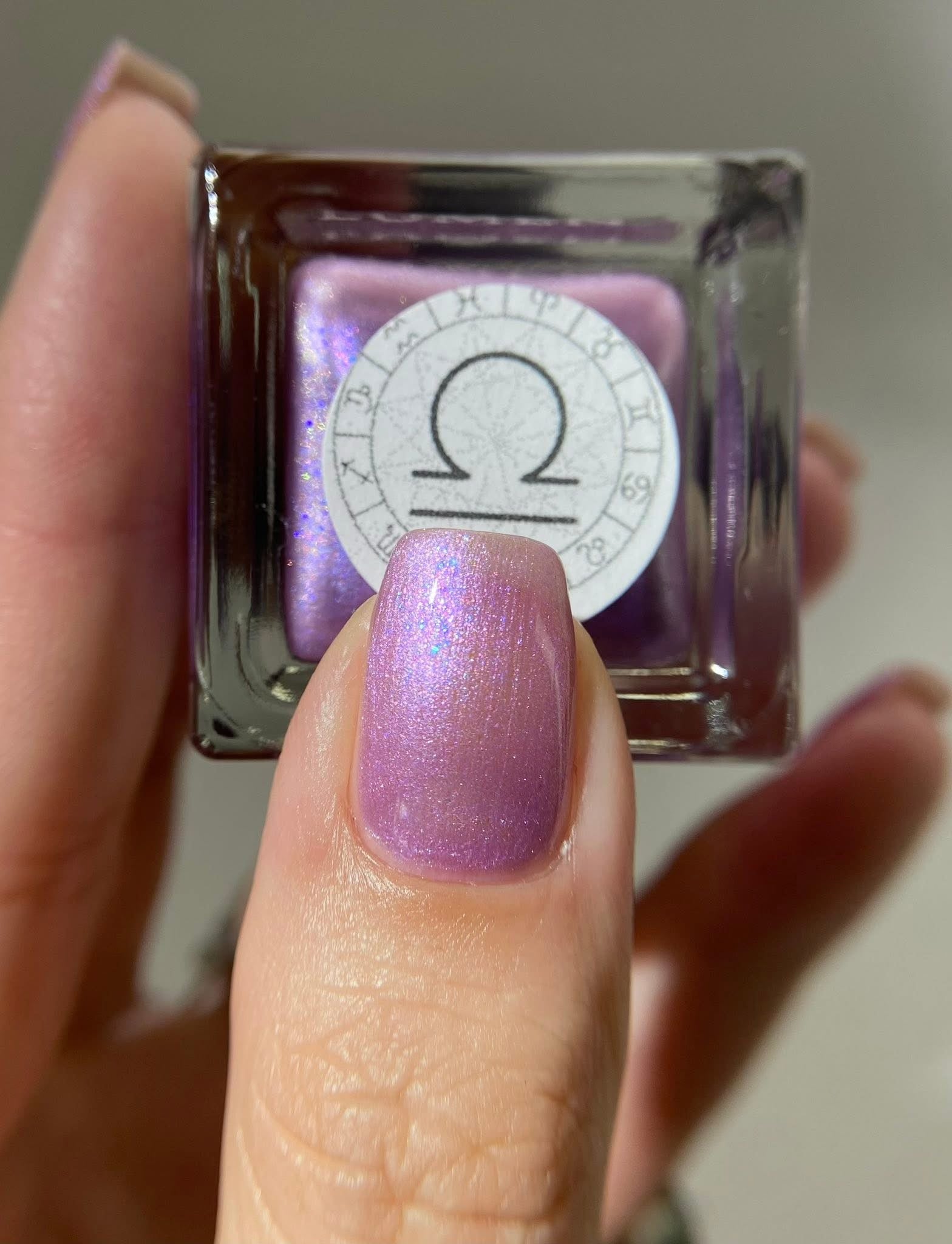 Inspired by the Zodiac sign of Libra an orchid base with a pearl purple shift and a blue to purple shimmer. Airy, harmonious, and balanced.