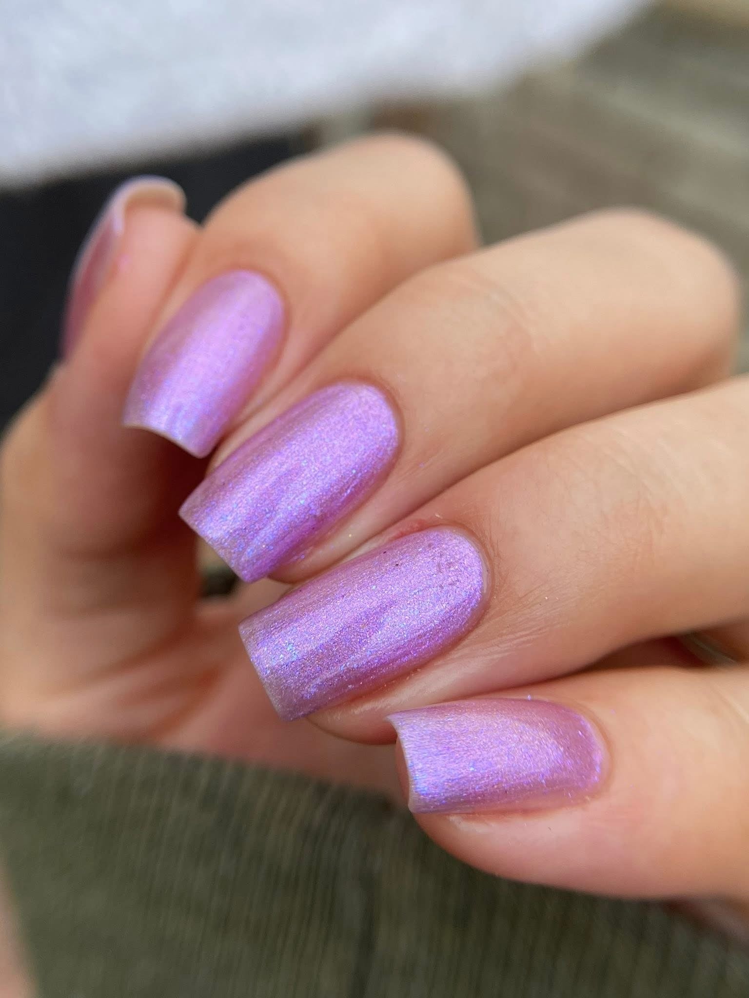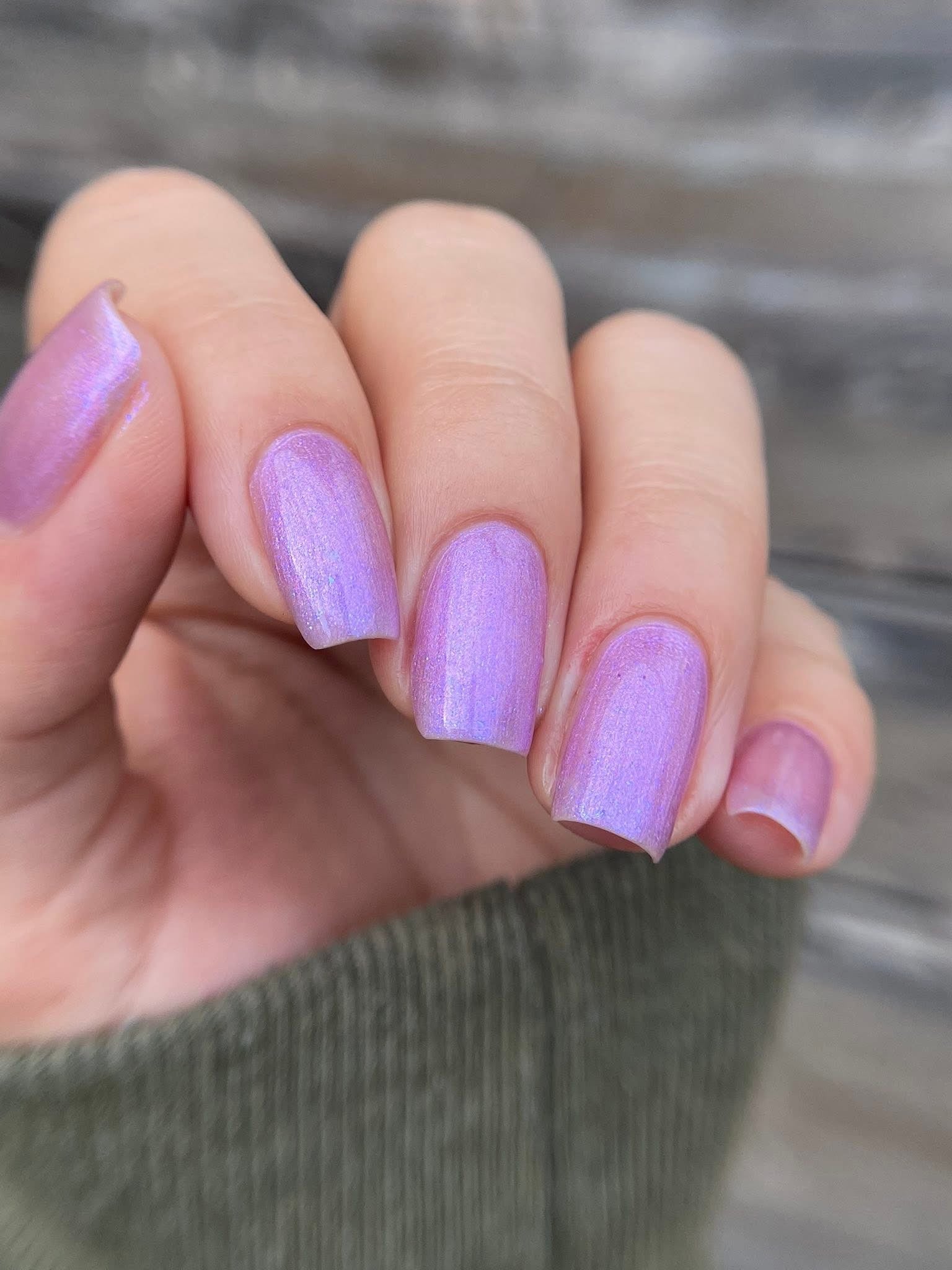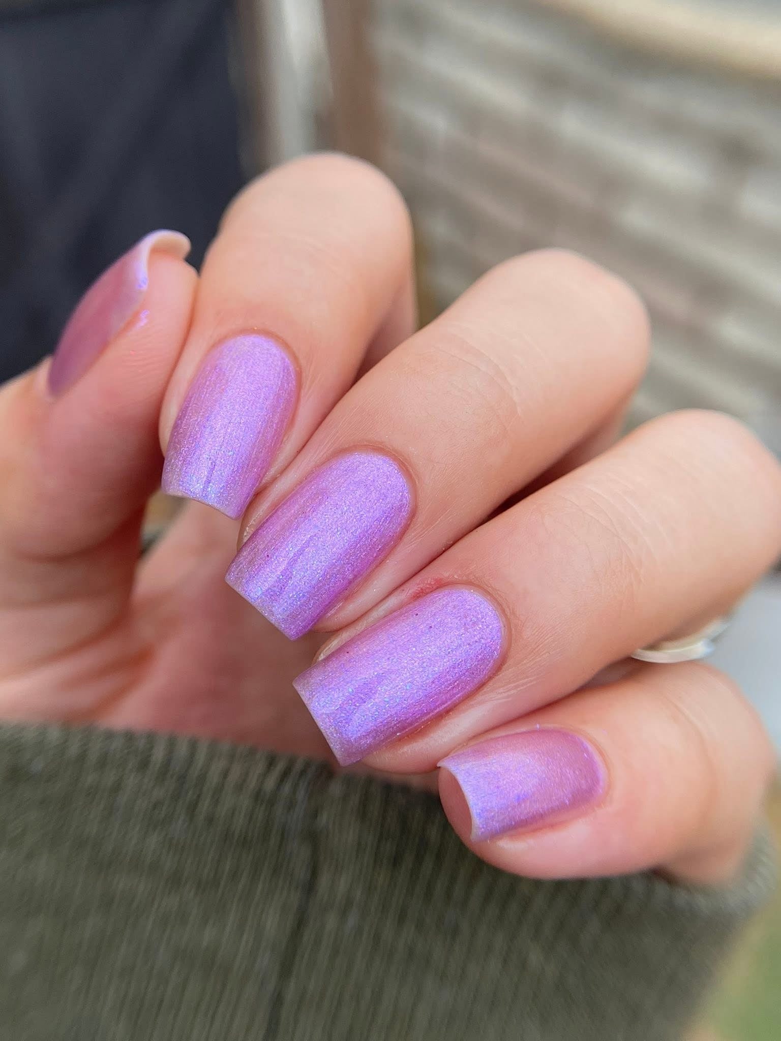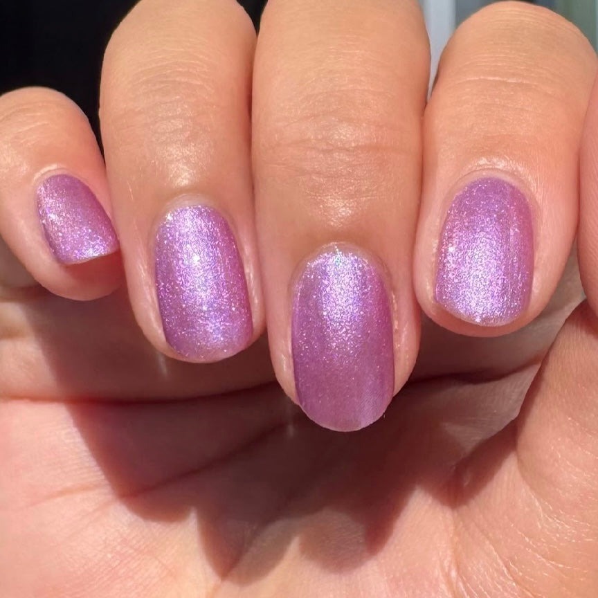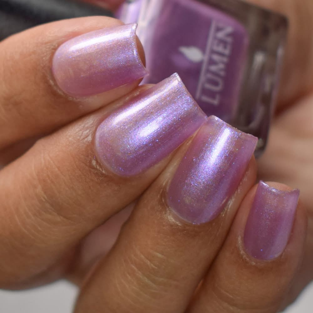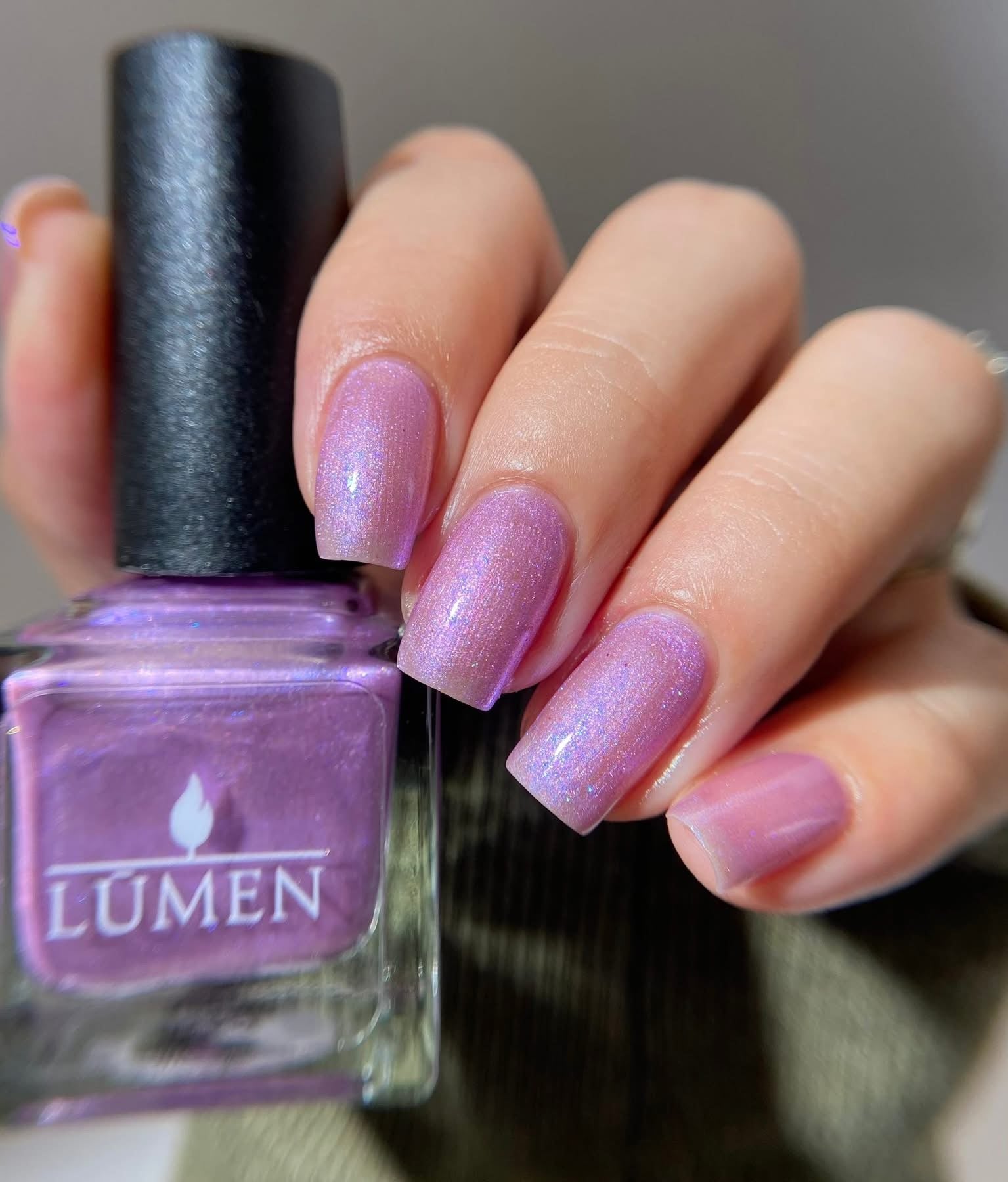 Inspired by the Zodiac sign of Libra an orchid base with a pearl purple shift and a blue to purple shimmer. Airy, harmonious, and balanced.