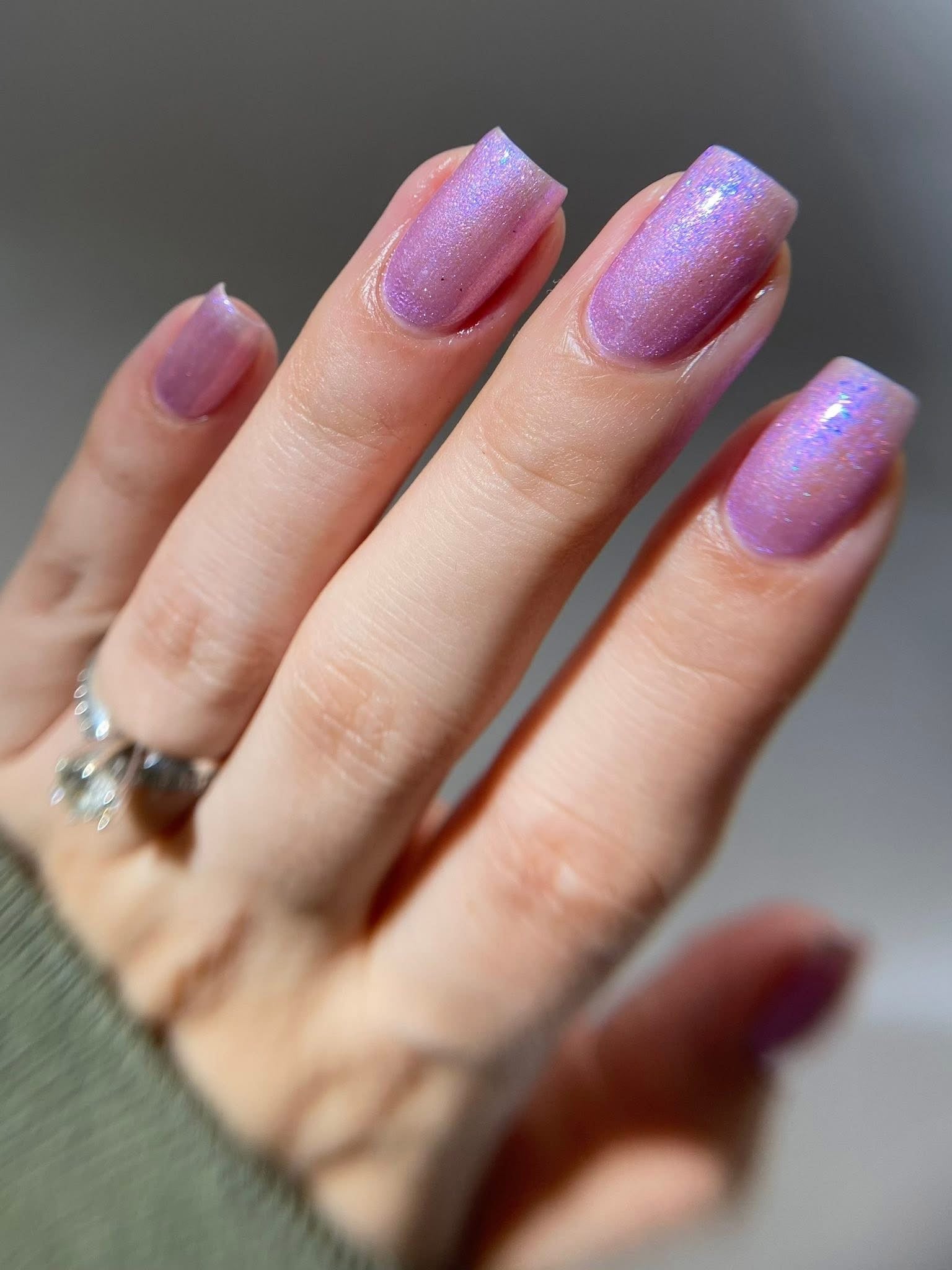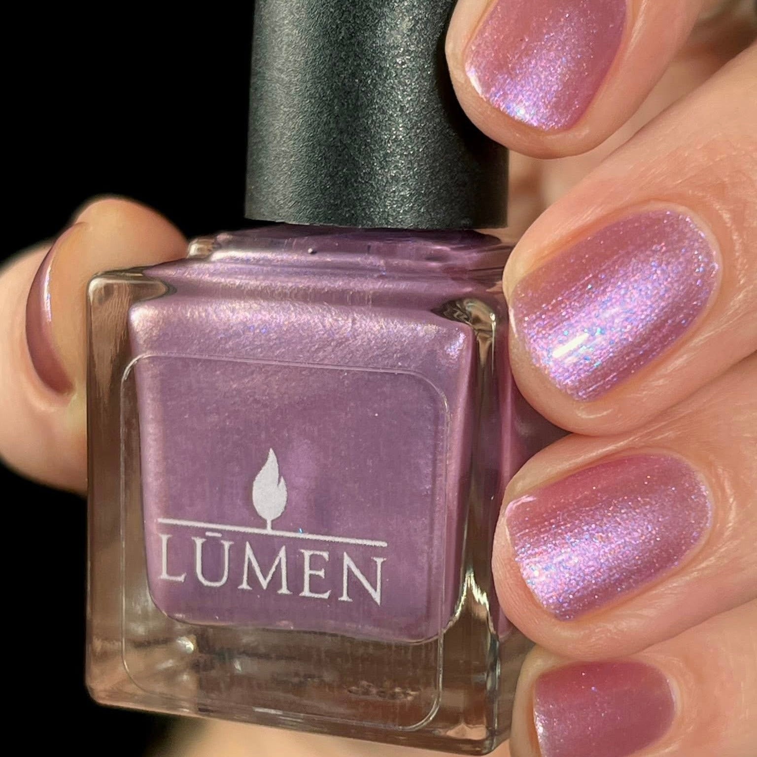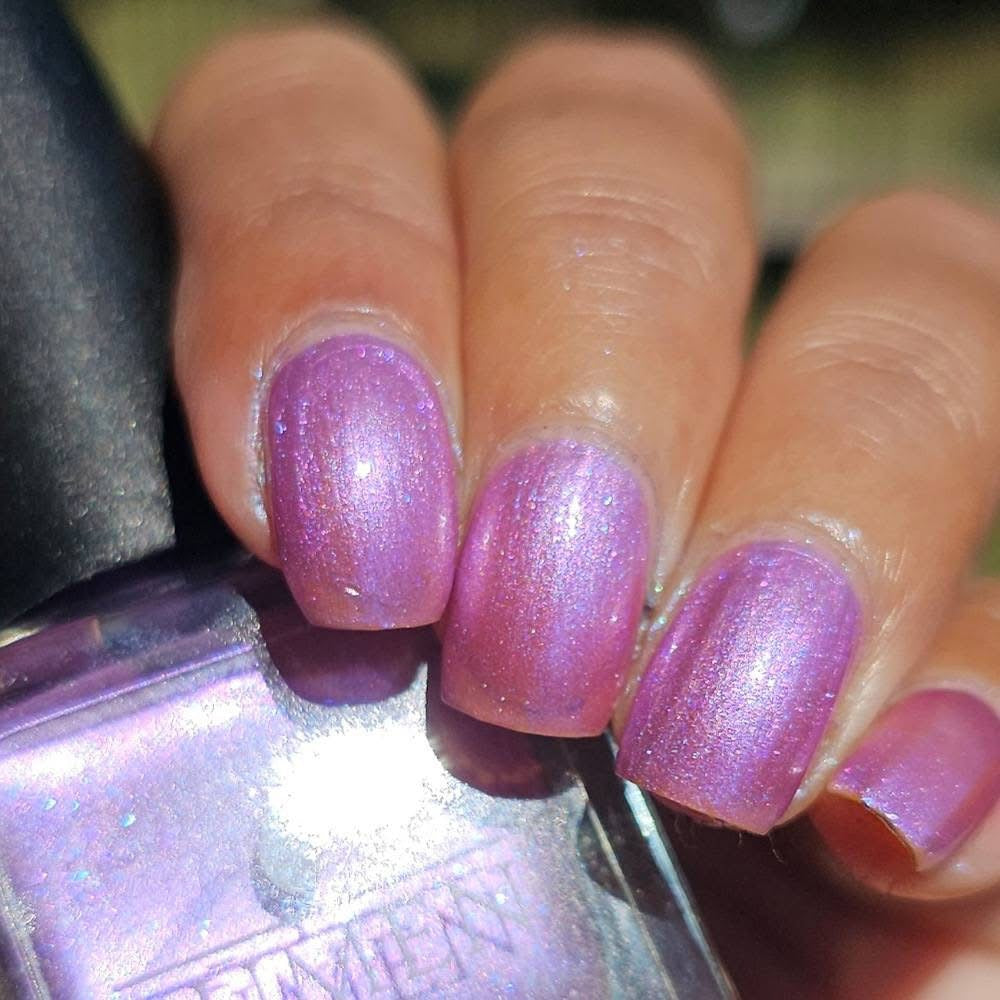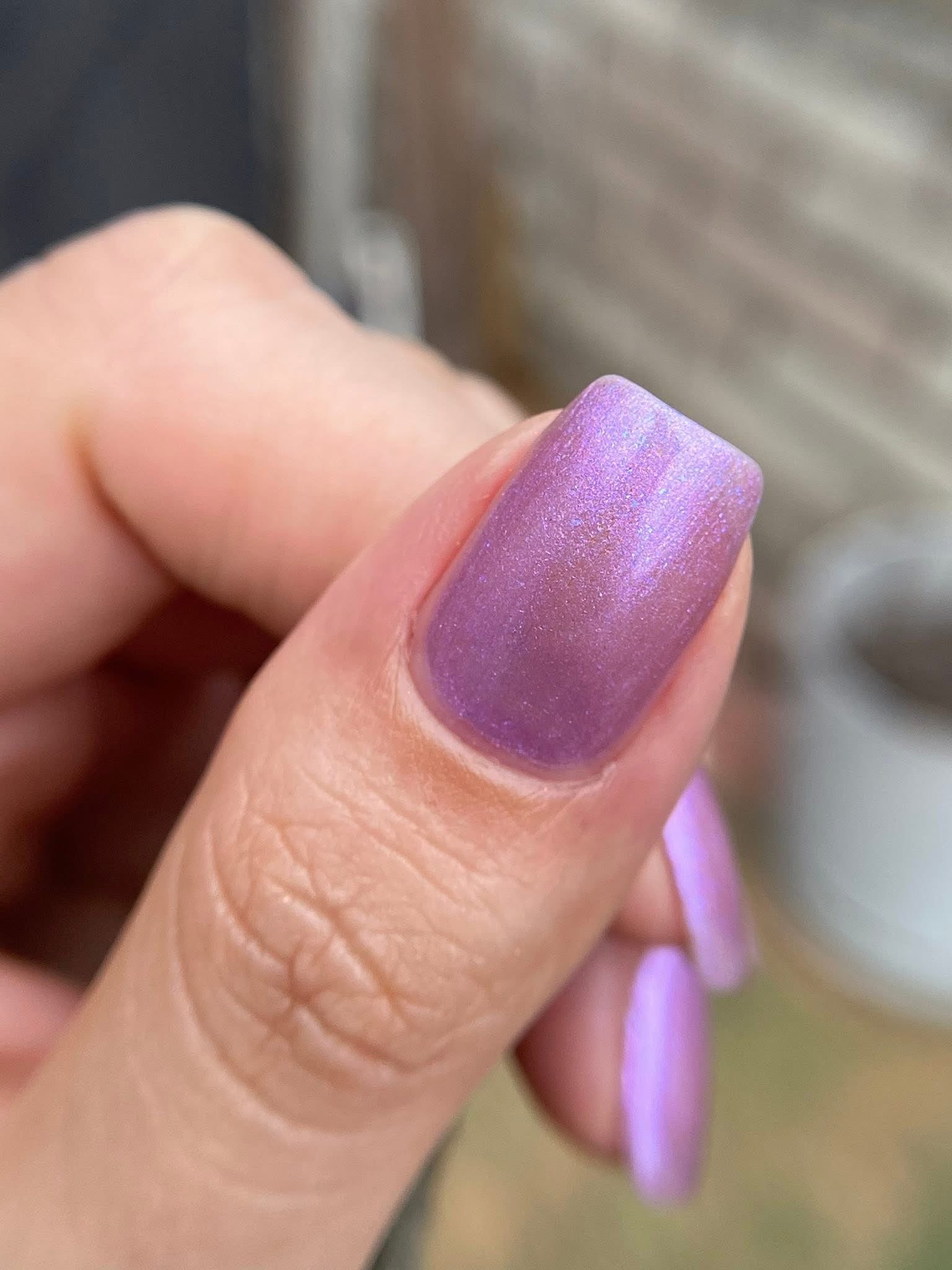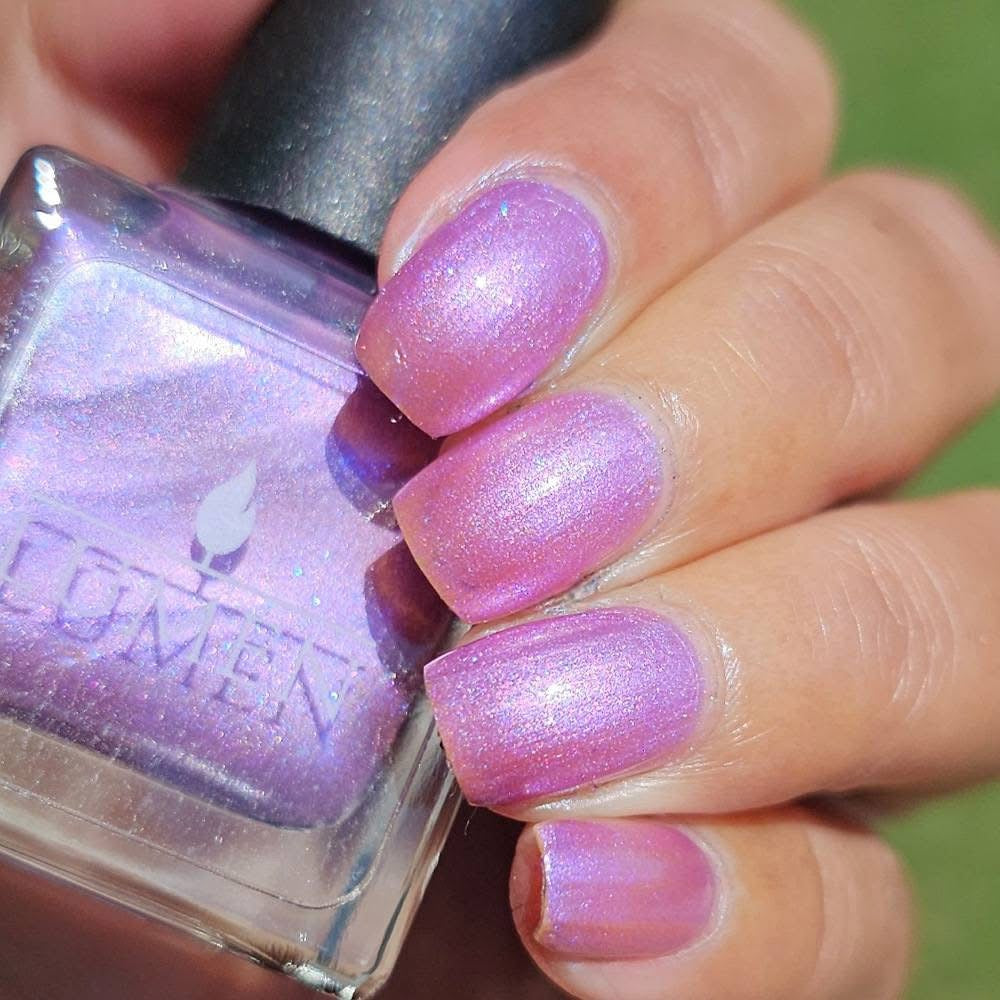 Inspired by the Zodiac sign of Libra an orchid base with a pearl purple shift and a blue to purple shimmer. Airy, harmonious, and balanced.