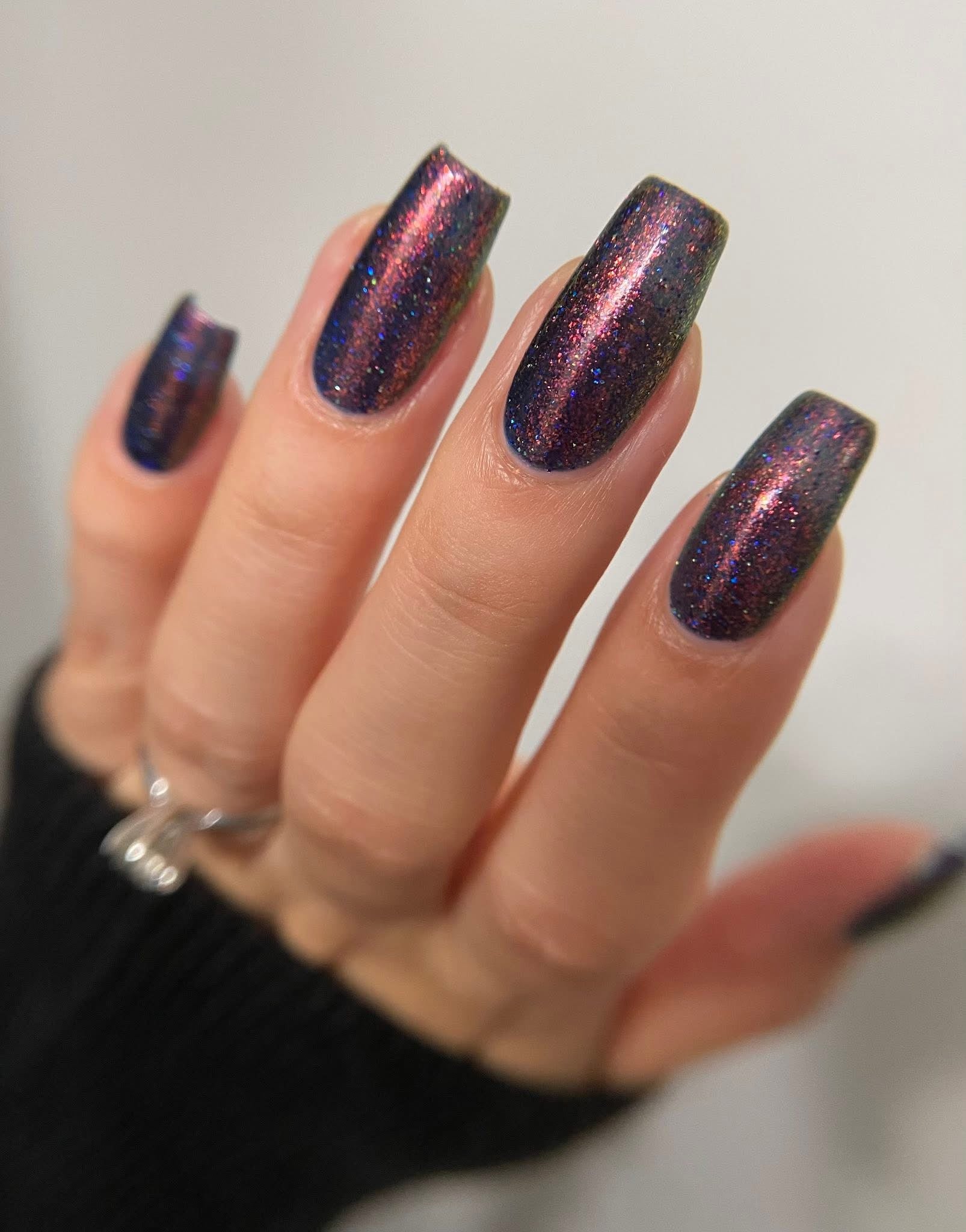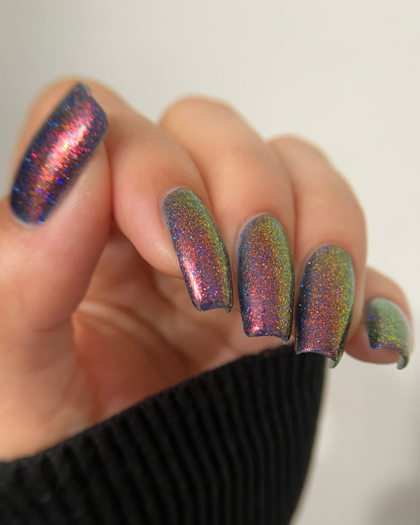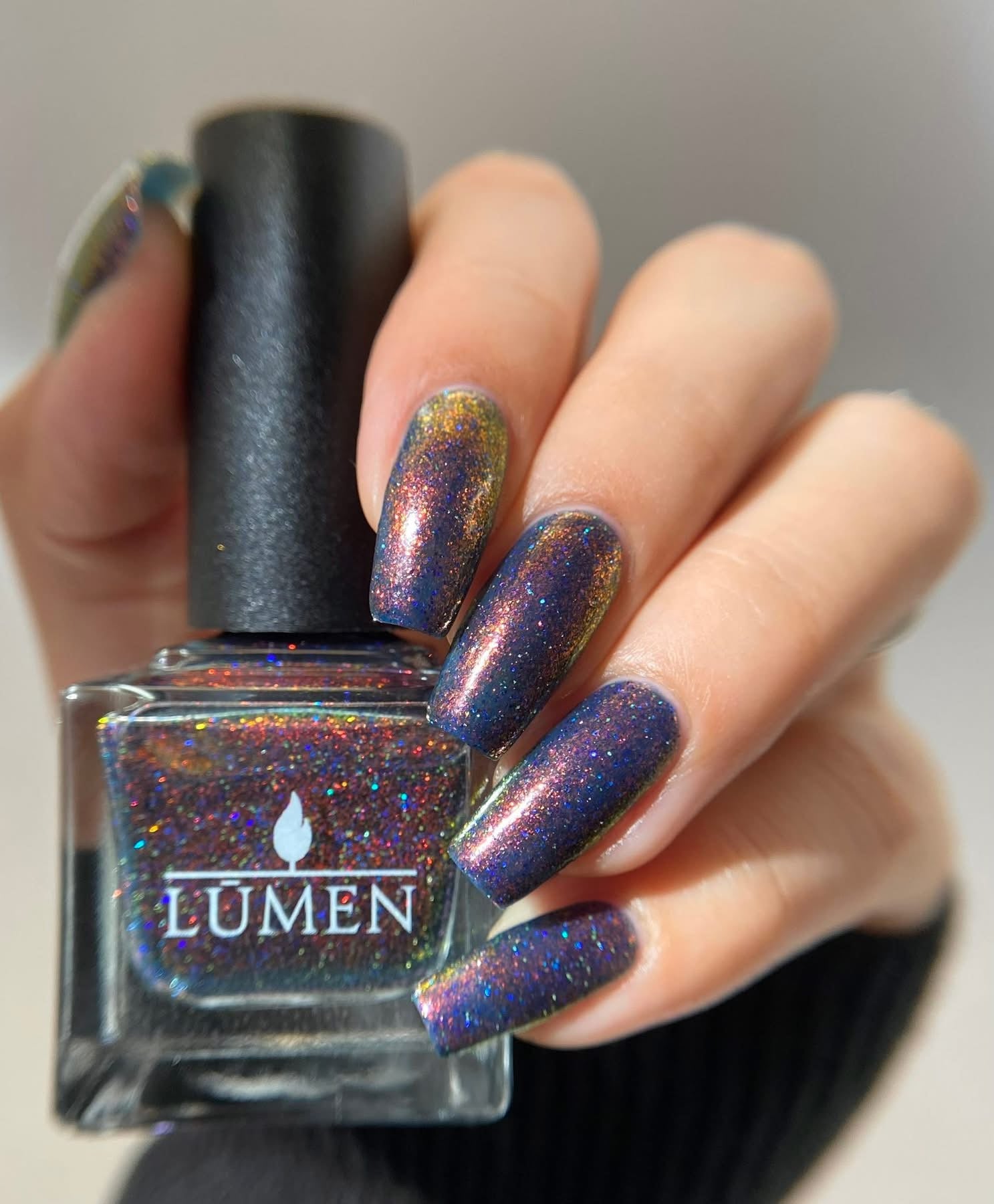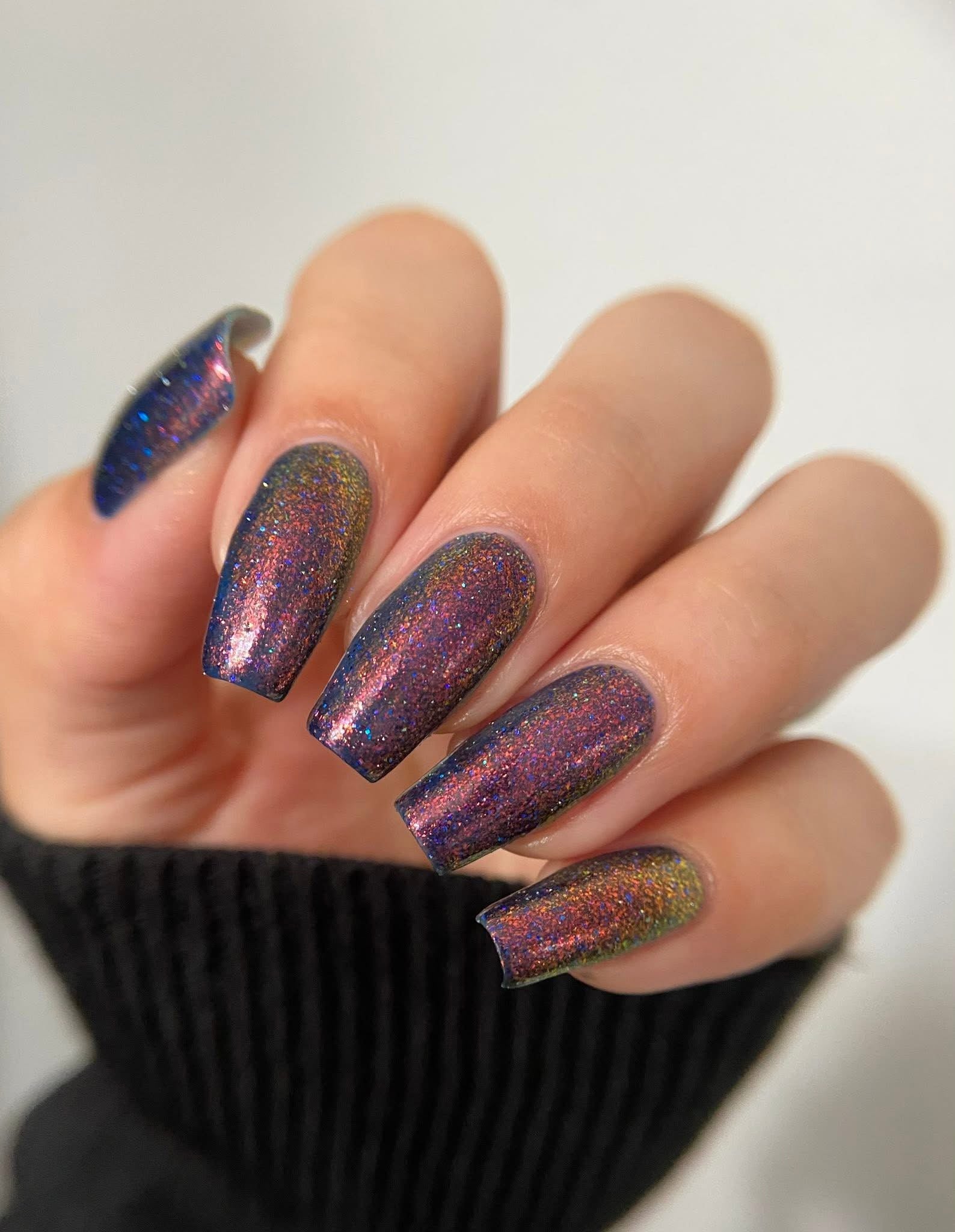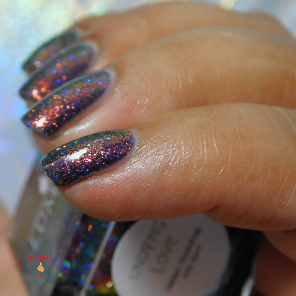 Undying love is our hidden bookshop polish for the month of July inspired by every Vampire love story because its too hard to pick only one! A blackened blue base saturated with a red to orange to purple shift, gold reflective and a scattered blue holo, this is a truly unique shade made for those who desire immortal love.
